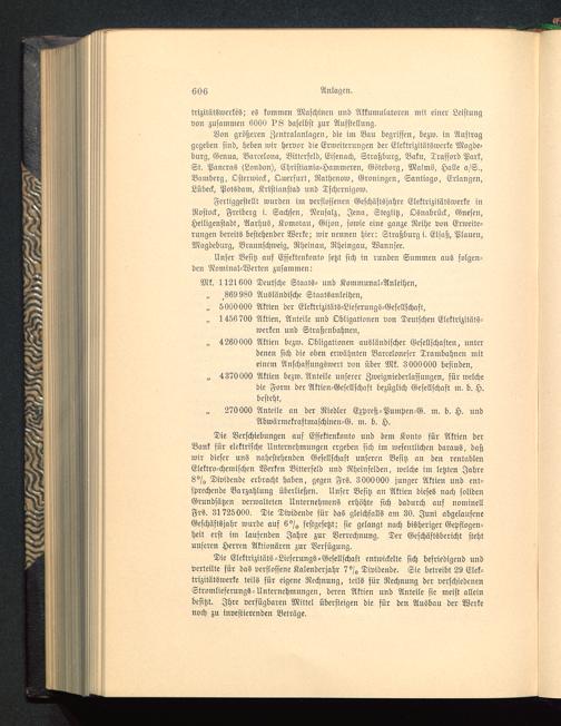 Fertiggestellt wurden im verflossenen Geschäftsjahre Elektrizitätswerke inRostock, Freiberg i. Sachsen, Neusalz, Jena, Stcglitz, Osnabrück, Gnesen ,Heiligenstadt, Aarhns, Komotan, Gijon , sowie eine ganze Reihe von Erweite-rungen bereits bestehender Werke; wir nennen hier: Straßburg i. Elsaß, Plauen ,Magdeburg, Braunschweig, Rheinan, Nheingau, Wannsee .