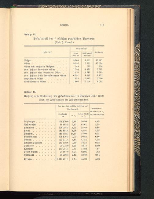 Umfang und Verteilung der Fideikommnisse in Preußen Ende 1899.(Nach den Feststellungen des Justizministeriums.)