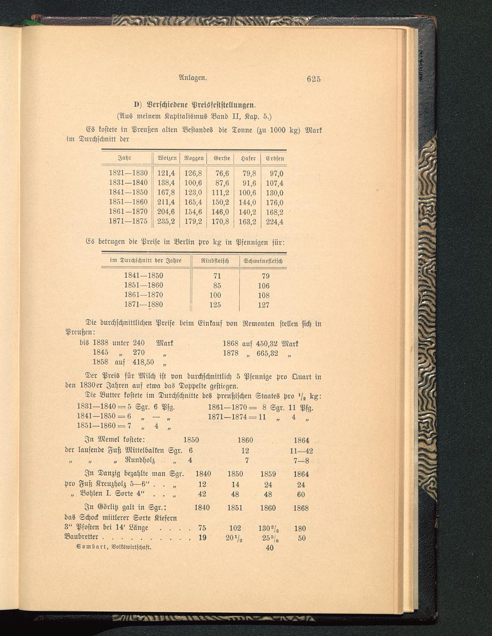 Es kostete in Preußen alten Bestandes die Tonne (zu 1000 KZ) Markini Durchschnitt der