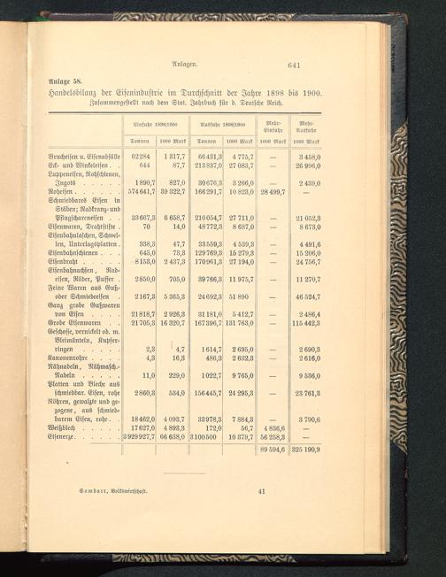 Handelsbilanz der Eisenindustrie im Durchschnitt der Jahre 1898 bis 1900.Zusammengestellt nach dem Stat. Jahrbuch für d. Teutsche Reich.