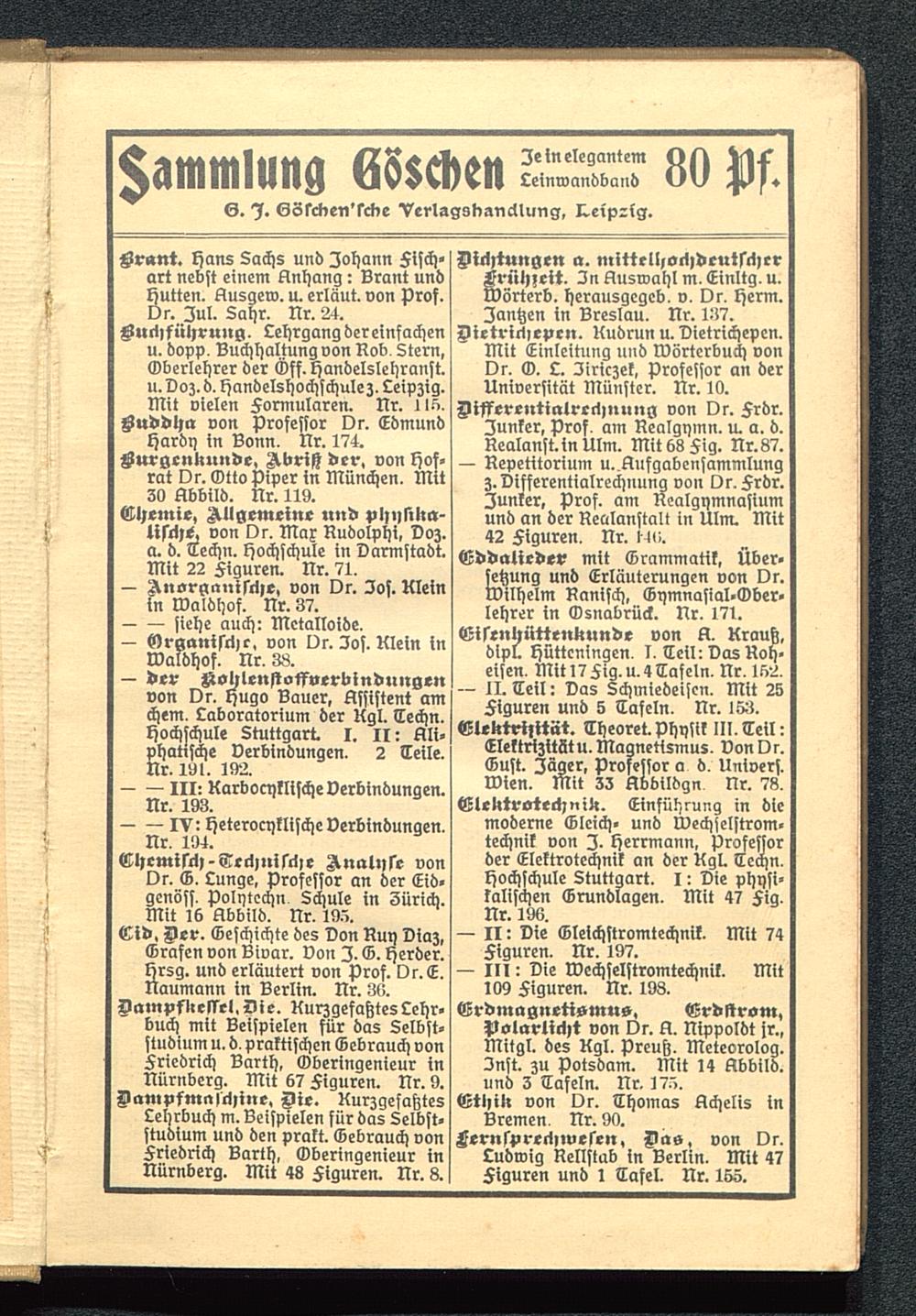Chemie, Allgemeine und phnlika-lisch«, von Dr. Max Rudolphi, voz.a. d. Techn. Hochschule i» varmstadt.Mit 22 Figuren. Nr. 71.