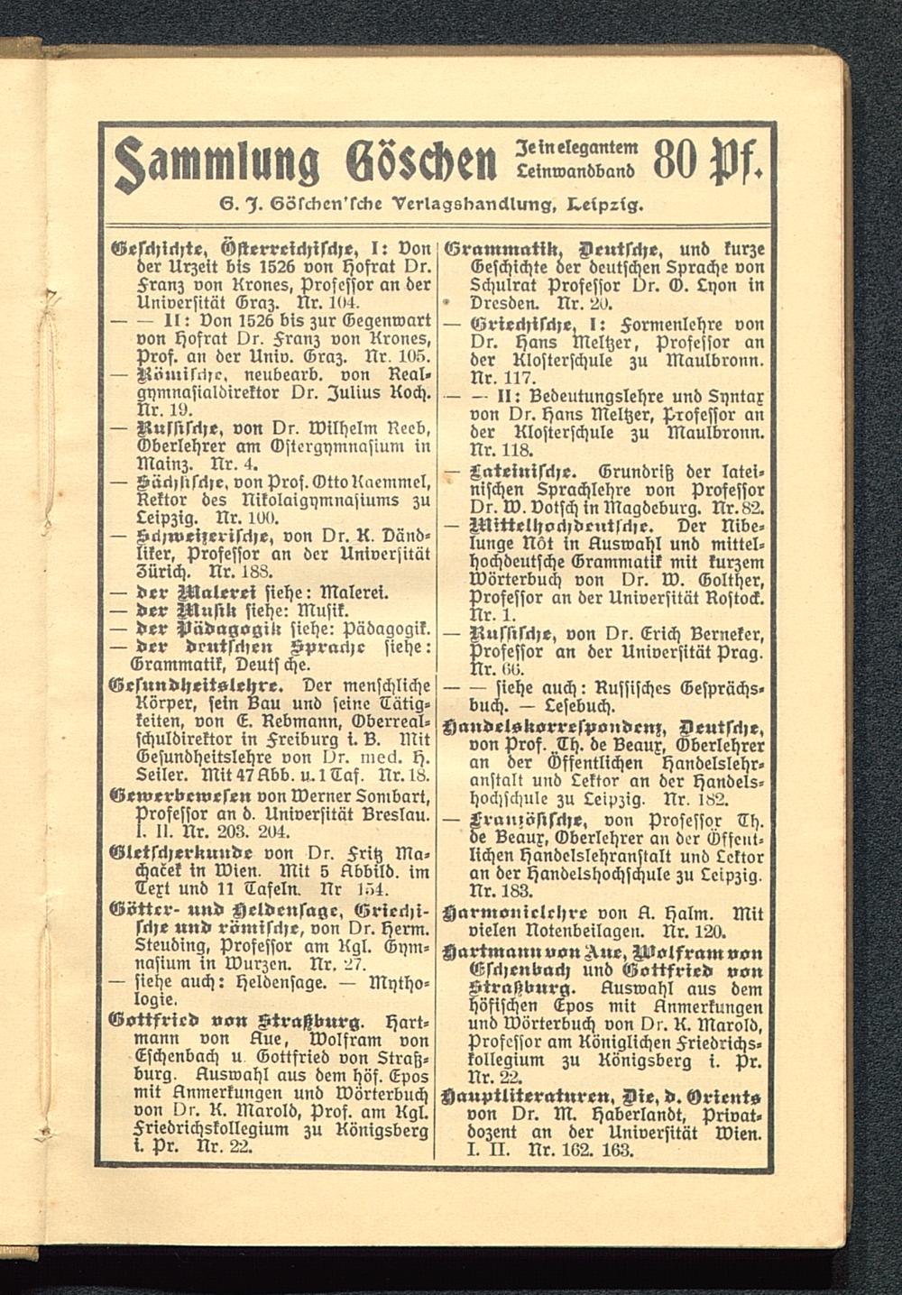 — Franiösischr, von Professor Th.de Beaux, Dberlehrer an der Dsfent-lichen Handclslehransialt und Lektoran der Handelshochschule zu Leipzig ,Nr. 183.