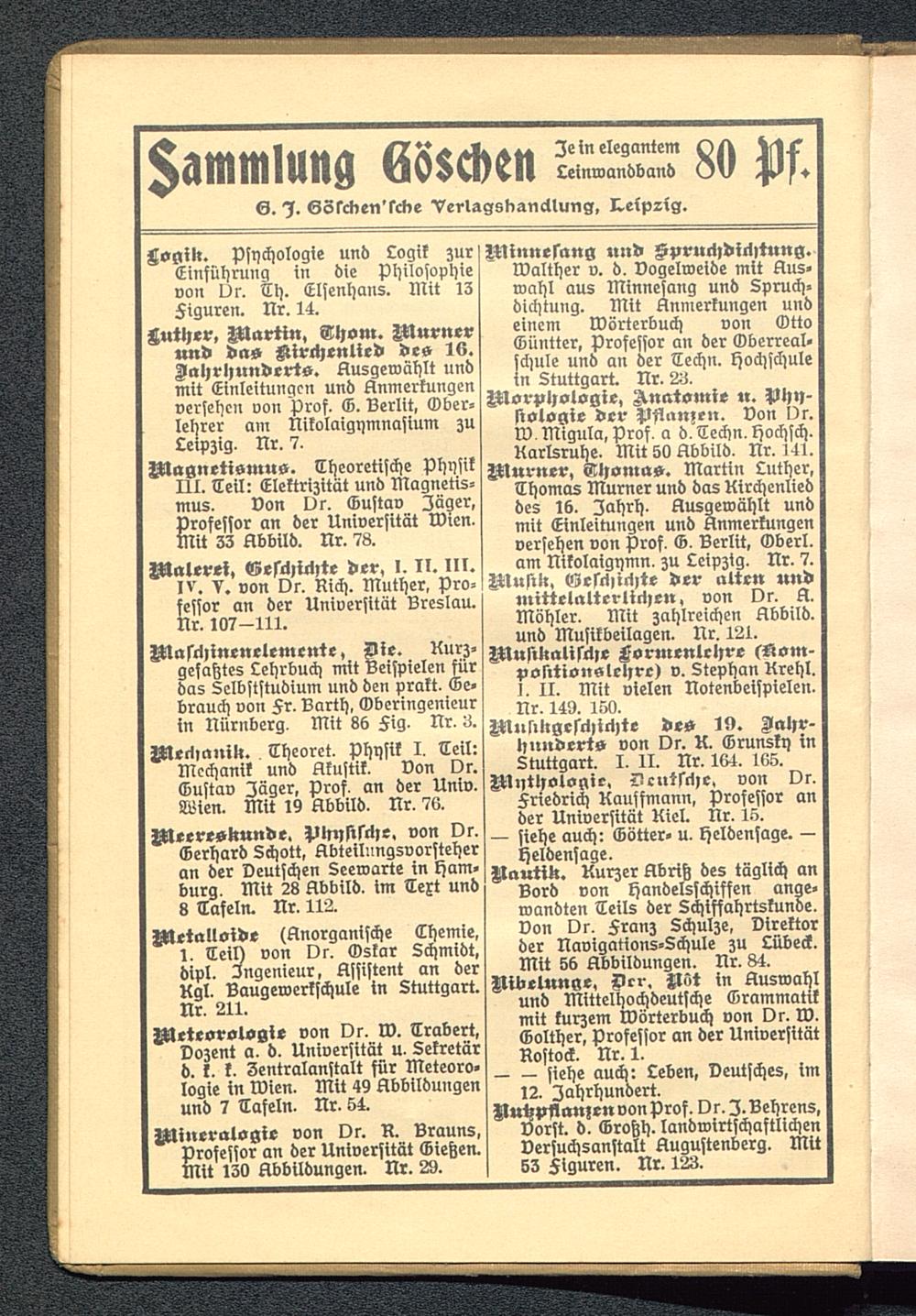 Logik. Psychologie und Logik zurEinführung in die Philosophievon Ur. Th. Elsenhans. Mit IZFiguren. Nr. 14.