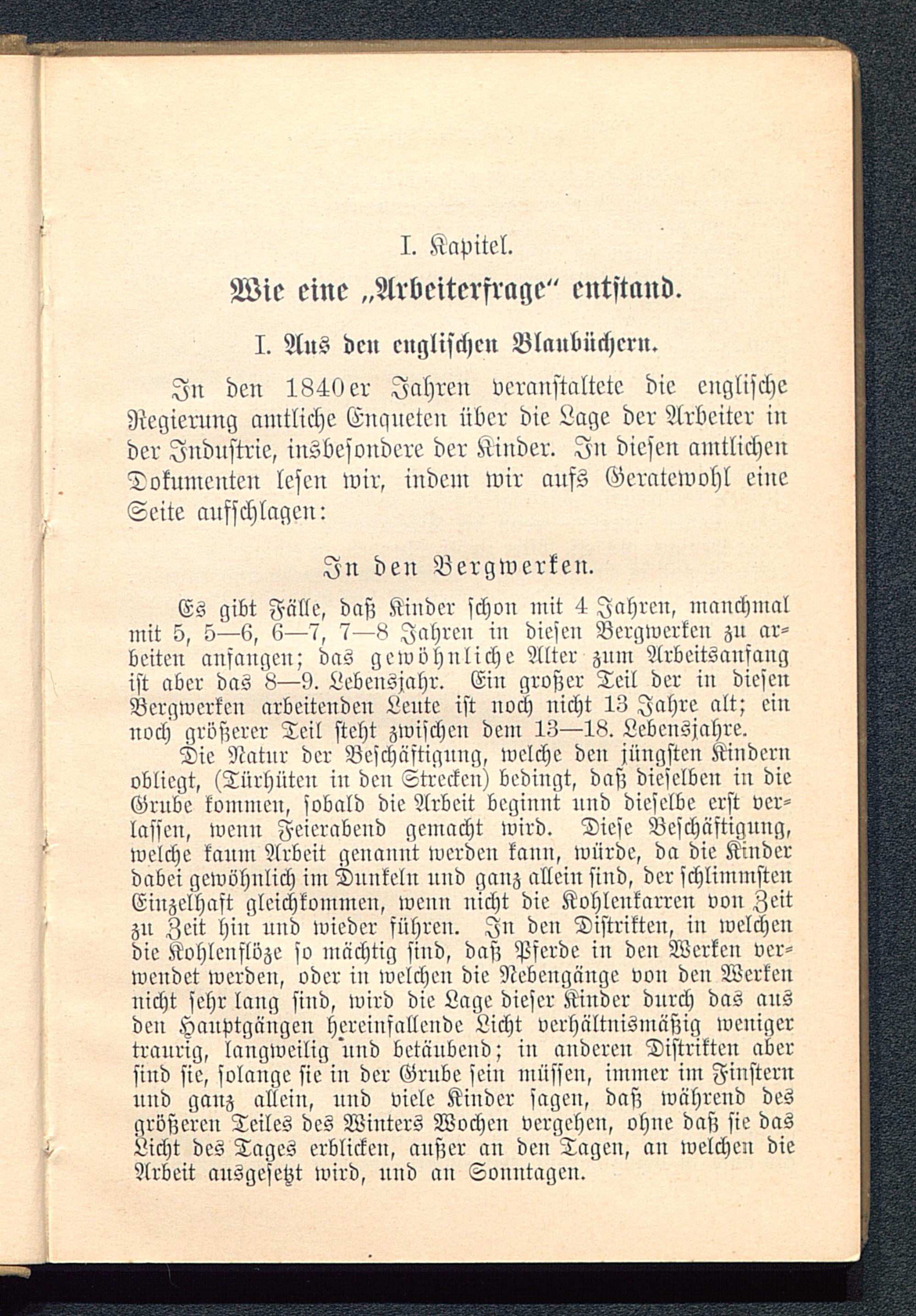 In den 1840 er Jahren veranstaltete die englischeRegierung amtliche Enqueten über die Lage der Arbeiter inder Industrie, insbesondere der Binder. In diesen amtlichenTokmnenteu lesen wir, indem wir aufs Geratewohl eineSeite aufschlagein