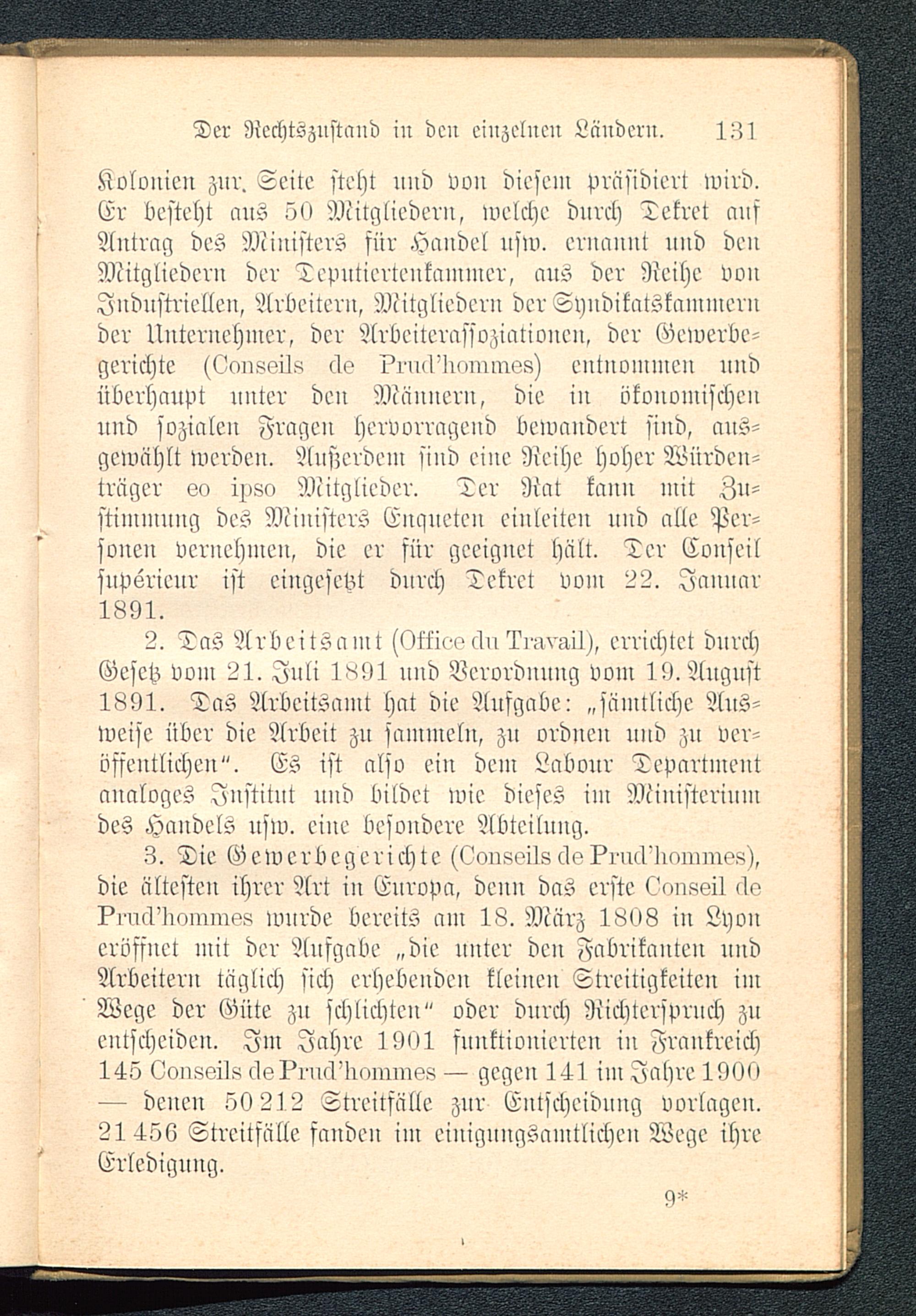 3. Die Gewerbegerichte ^mrsoils cls?rue1'IwminsK),die ältesten ihrer Art in Europa , denn das erste ^onssil cls?ruä'bonrm?5! wurde bereits am 18. März 1808 in Lyoneröffnet mit der Aufgabe „die nnter den Fabrikanten undArbeitern täglich sich erhebenden kleinen Streitigkeiten imWege der Güte zu schlichten" oder durch Richterspruch zuentscheiden. Im Jahre 1901 funktionierten in Frankreich 145 Lonssik cls?rucl'lrourme8 — gegen 141 im Jahre 1990— denen 59 212 Streitfälle zur Entscheiduug vorlagen.2145V Streitfälle fanden im einignngSamtlichen Wege ihreErledignng.