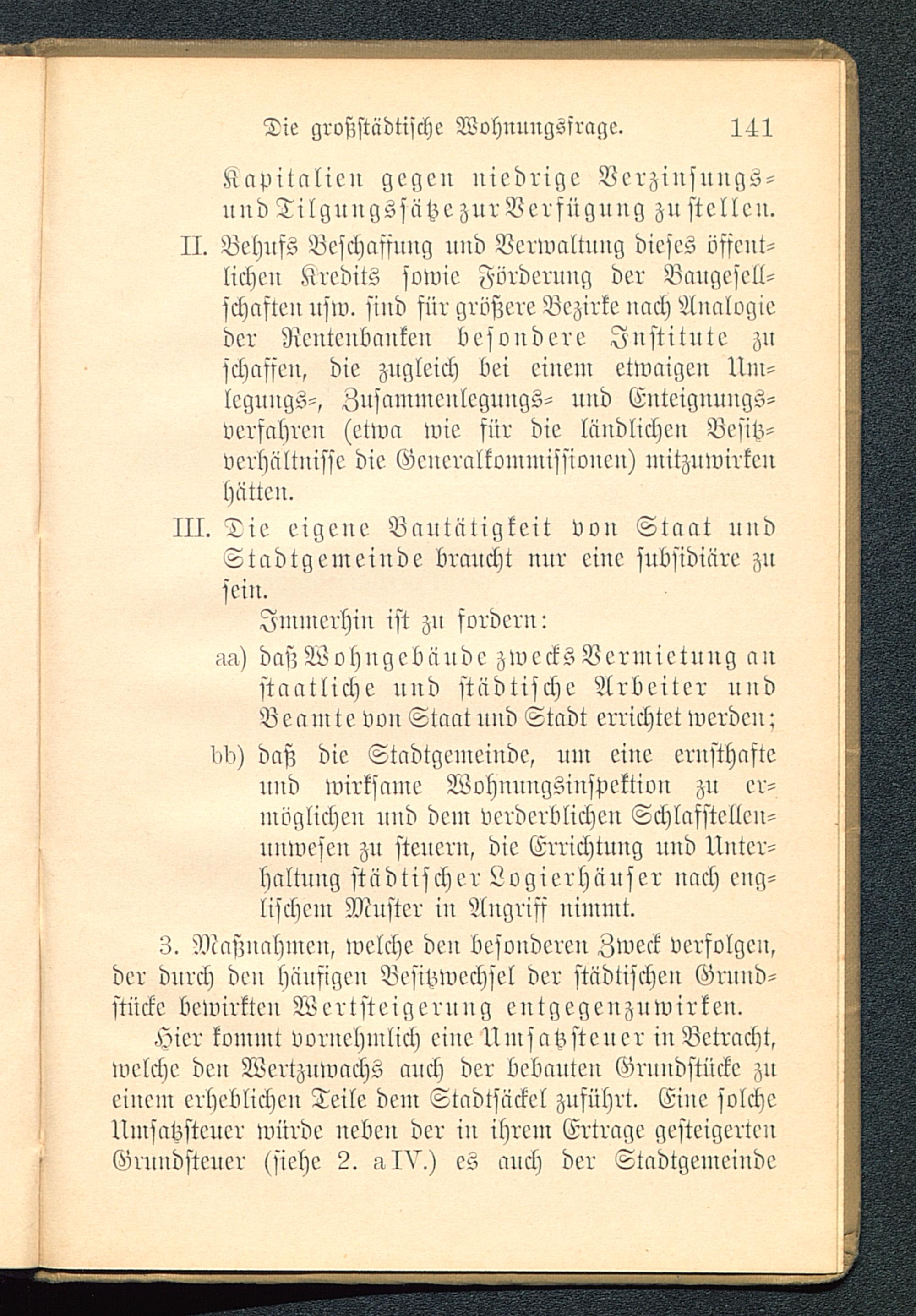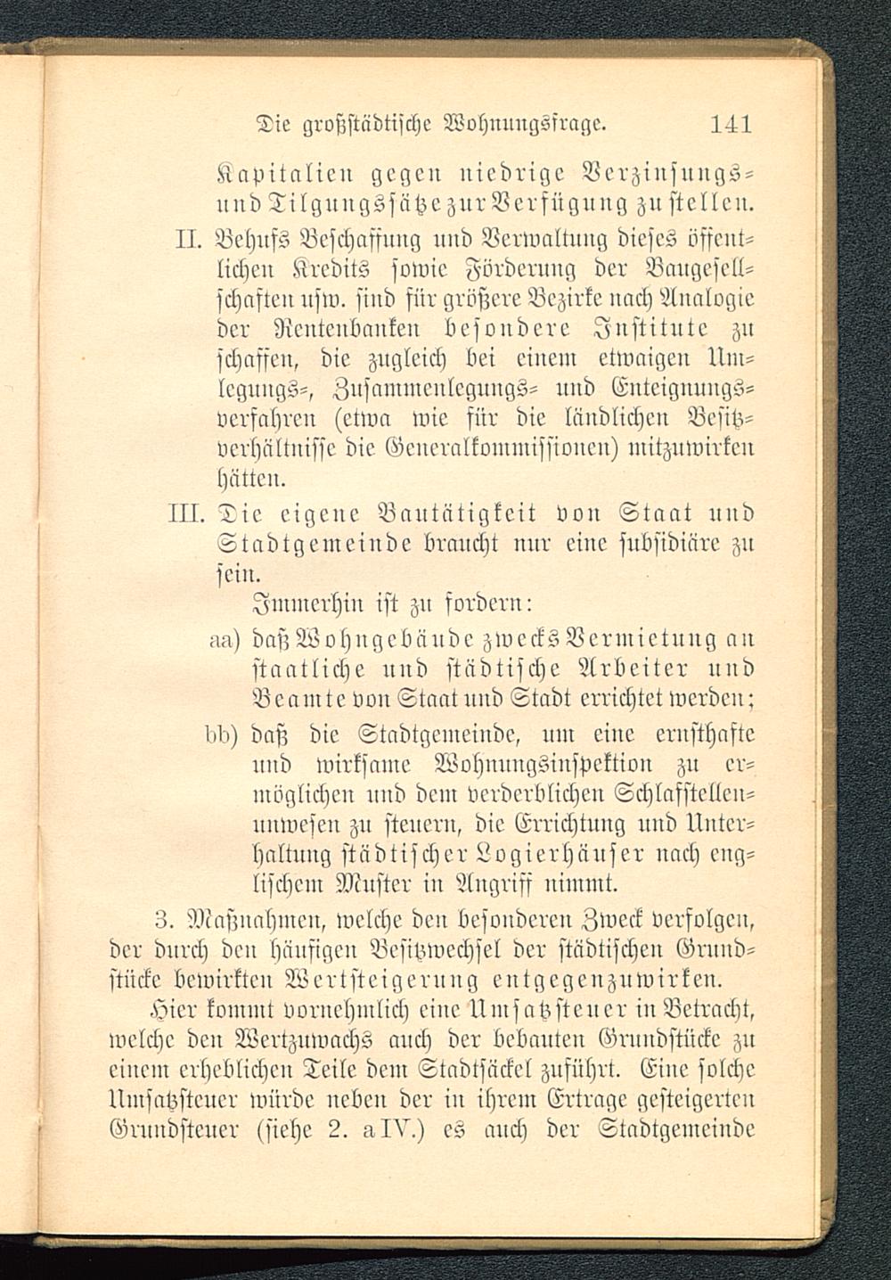 Immerhin ist zu fordenn-m) dasz Wohngebäudc zwecks Vermietung anstaatliche uud städtische Arbeiter undBeamte vou Staat uud Stadt errichtet werde«:I>d) daß die Stadtgemeiude, um eine ernsthaftennd wirksame Wohnungsinspektiou zu er-möglichen nnd dem verderblichen Schlafstellen-uuwescn zu steuern, die Errichtung und Unter-haltung städtischer Logierhäuser nach eng-lischem Muster in Angriff nimmt.3. Maßnahmen, welche den besonderen Zweck verfolgen,der durch den häufigen Besitzwechsel der städtischen Grund-stücke bewirkten Wertsteigeruug entgegenzuwirken.