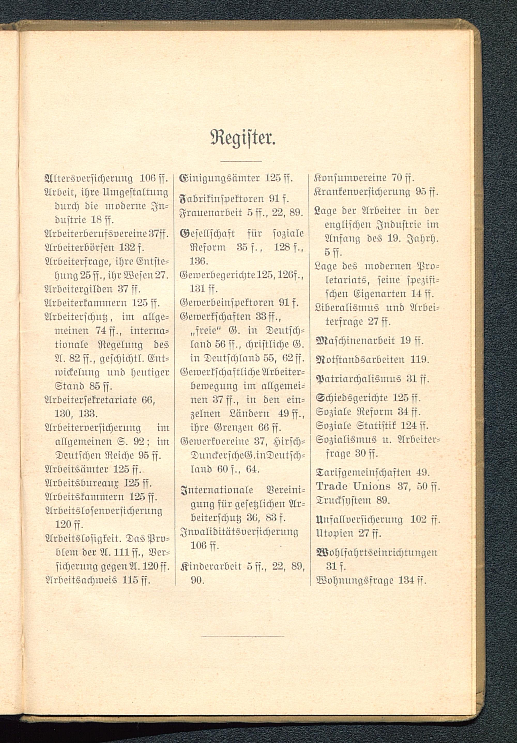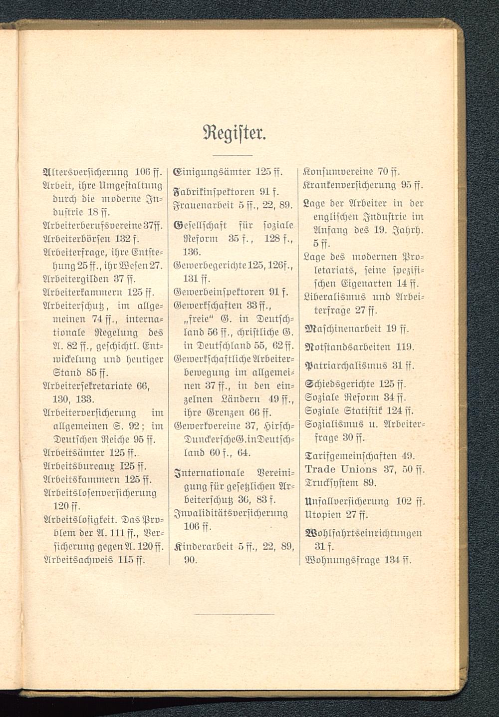 dustric 18 ff.Arbcitcrbcrufsvcrcine37ff,Albeiterbörsen 132 f.Arbeiterfrage, ihre Entste-hung 25 ff,, ihr Wesen 27,Arbcitcrgildcn 37 ff,Arbeiterkammcru 125 ff,Arbcitcrschutz, im allge-meinen 74 ff,, iuterna-