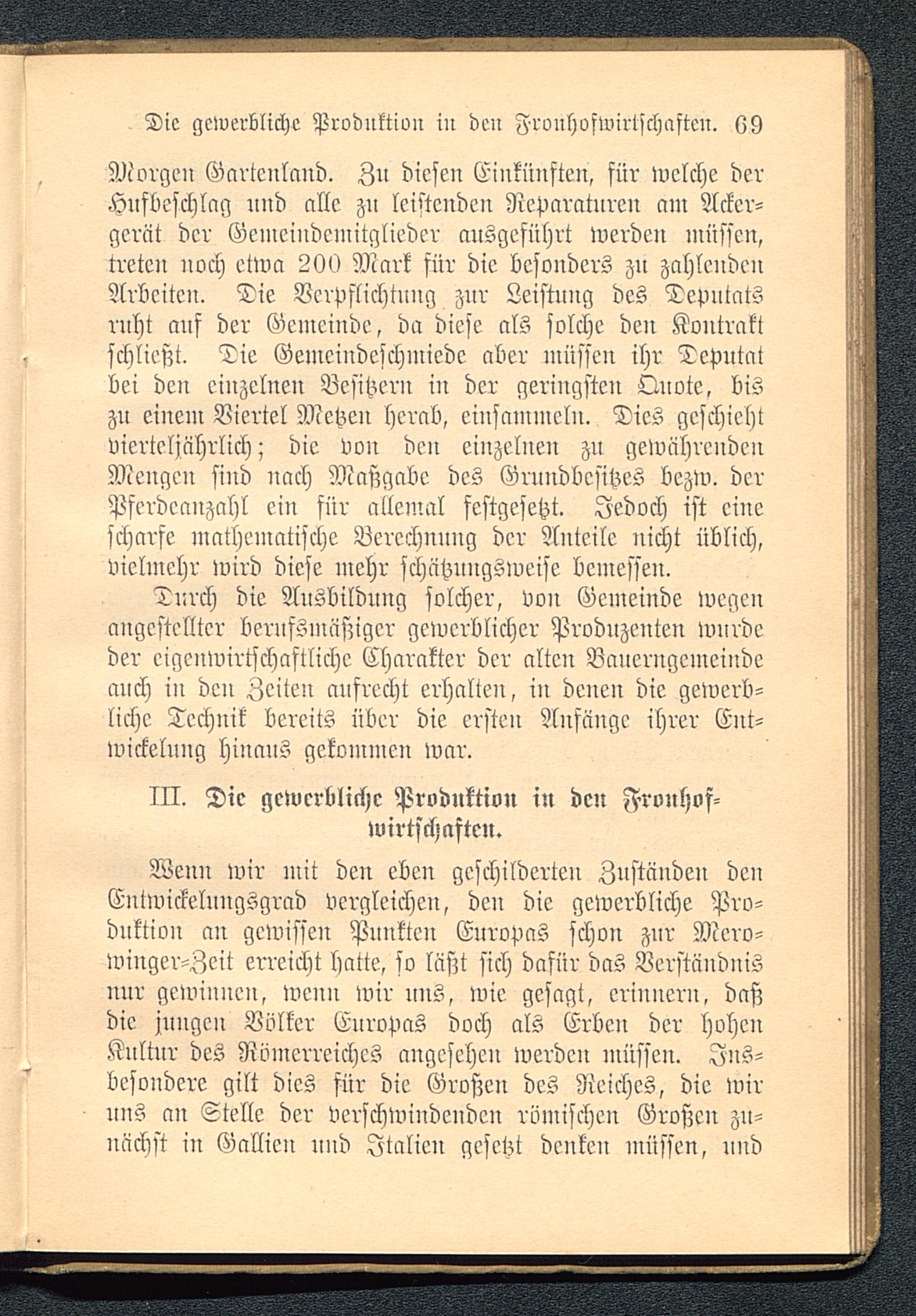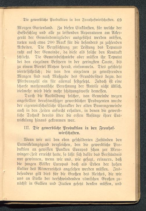 III. Die gewerbliche Produktion in den Fronhof-wirtschaften.