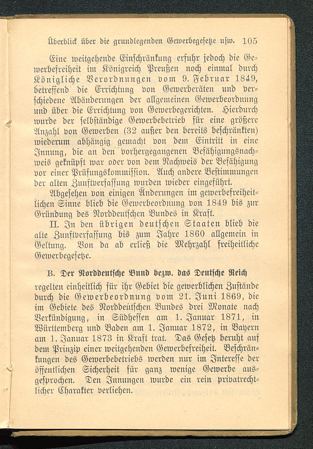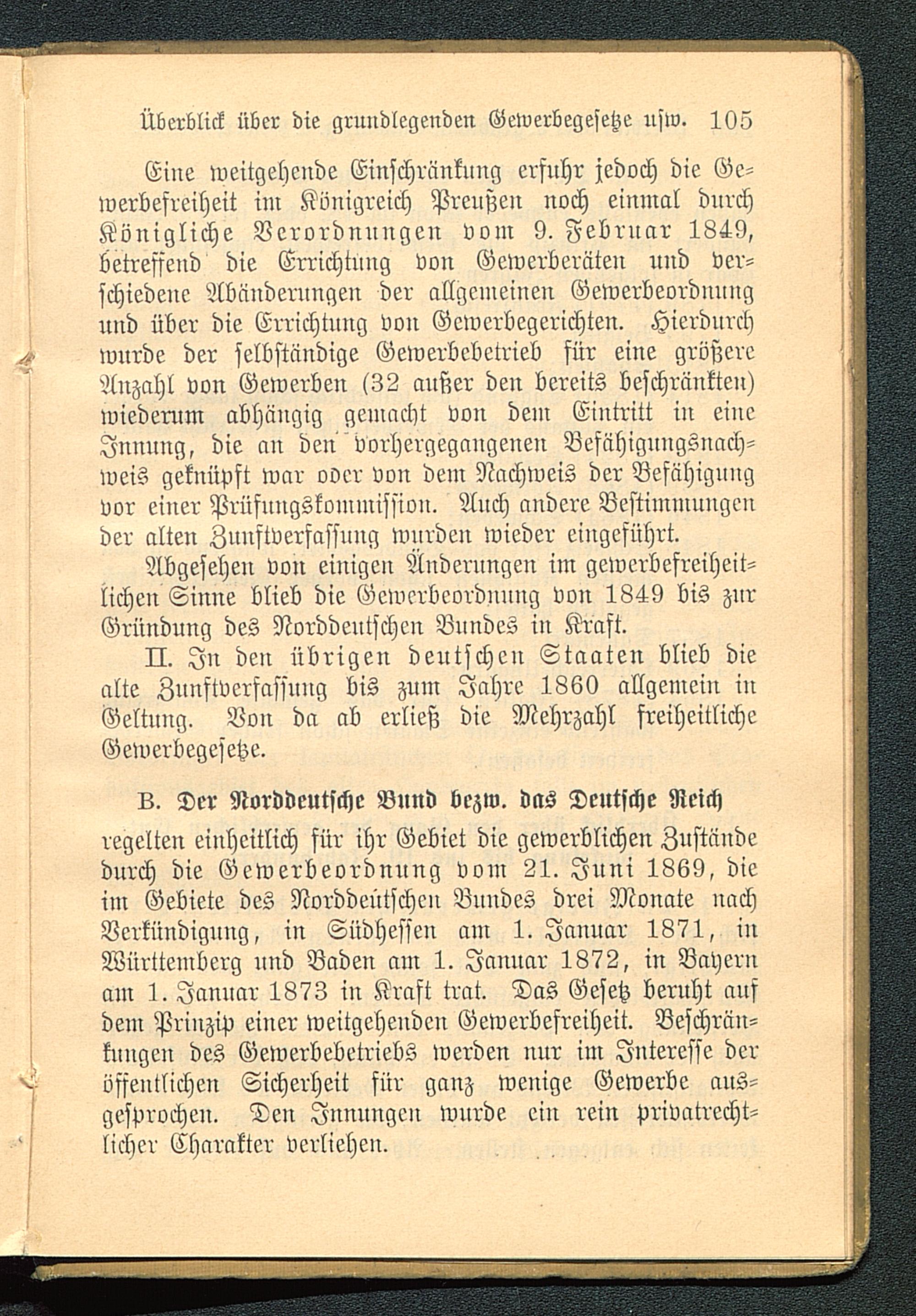 Abgesehen von einigen Änderungen im gewerbefreiheit-lichen Sinne blieb die Gewerbeordnung von 1849 bis znrGründung des Norddeutschen Bundes in Kraft.