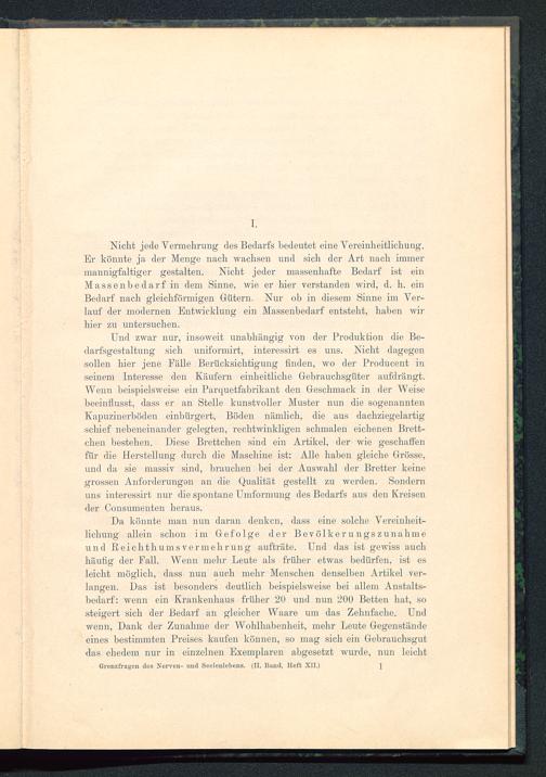 Nicht jede Vermehrung des Bedarfs bedeutet eine Vereinheitlichung.Er könnte ja der Menge nach wachsen und sich der Art nach immermannigfaltiger gestalten. Nicht jeder massenhafte Bedarf ist einMassenbedarf in dem Sinne, wie er hier verstanden wird, d. h. einBedarf nach gleichförmigen Gütern. Nur ob in diesem Sinne im Ver-lauf der modernen Entwicklung ein Massenbedarf entsteht, haben wirhier zu untersuchen.