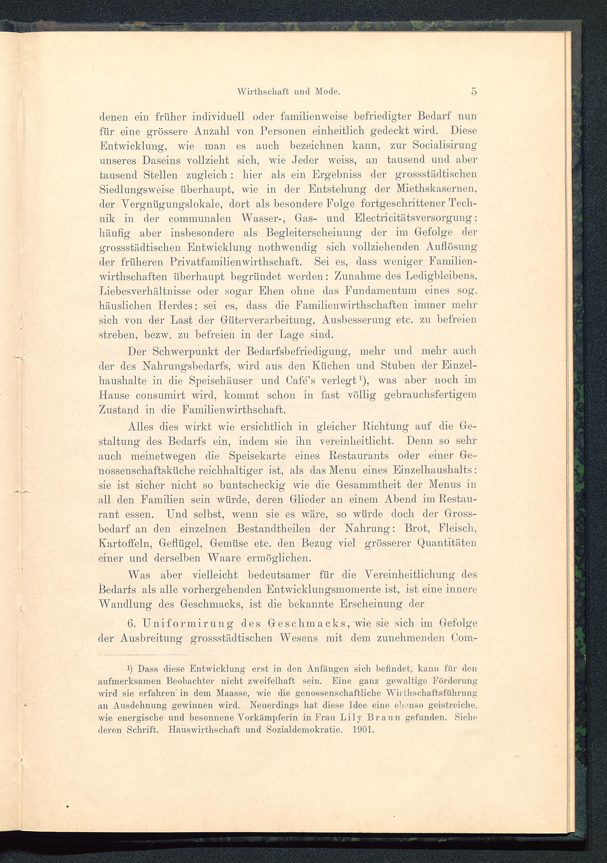Der Schwerpunkt der Bedarfsbefriedigung, mehr und mehr auchder des Nahrungsbedarfs, wird aus den Küchen und Stuben der Einzel-haushalte in die Speisehäuser und Cafe's verlegt*), was aber noch imHause consumirt wird, kommt schon in fast völlig gebrauchsfertigemZustand in die Familienwirthschaft.