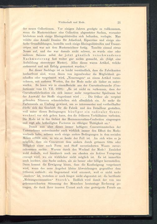 Billigkeit einer nach Form und Stoff unveränderten Waare zuvor-zukommen suchte. Warum durch den Wechsel der Mode? Zunächstwohl deshalb, weil hierdurch noch am ehesten ein fictiver Vorsprungerzeugt wird, wo ein wirklicher nicht möglich ist. Es ist immerhinnoch leichter, eine Sache anders, als sie besser oder billiger herzustellen.