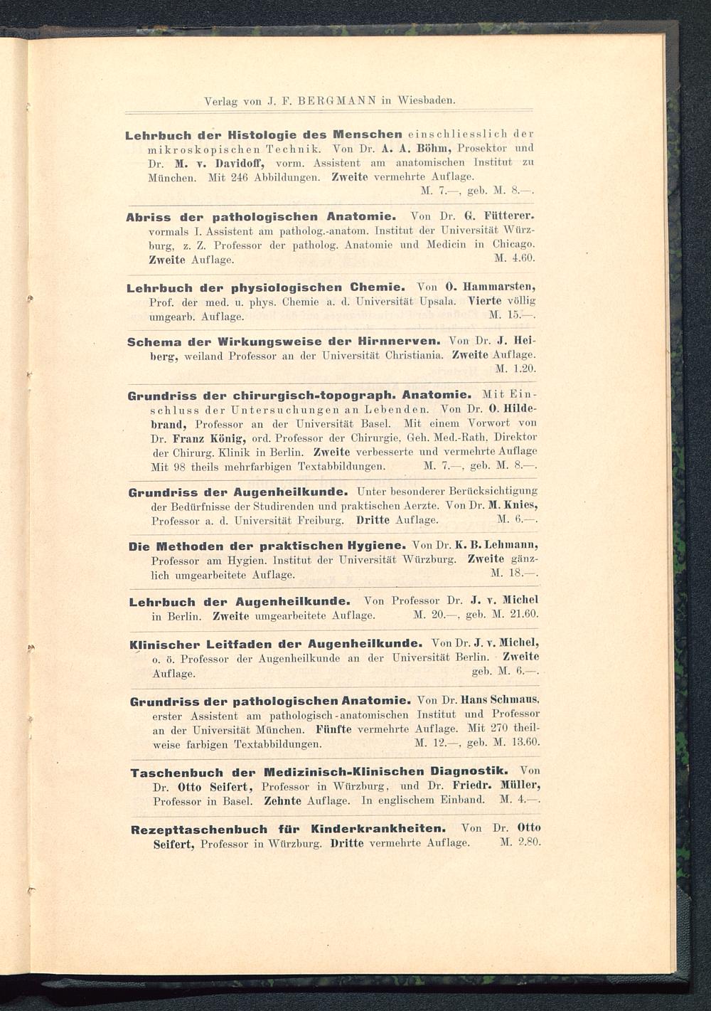Dr. Otto Seifert, Professor in Würzburg , und Dr. Friedr. Müller,Professor in Basel . Zehnte Auflage, ln englischem Einhand. AI. 4.—.
