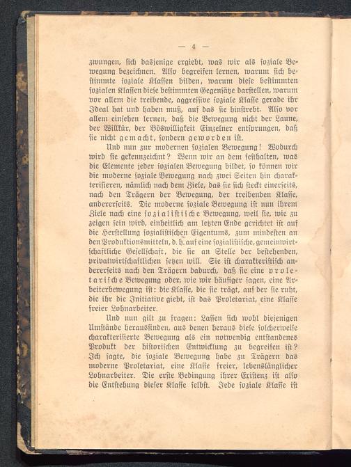 zwungen, sich dasjenige ergiebt, was wir als soziale Be-wegung bezeichnen. Also begreifen lernen, warum sich be-stimmte soziale Klassen bilden, warum diese bestimmtensozialen Klassen diese bestimmten Gegensätze darstellen, warumvor allem die treibende, aggressive soziale Klasse gerade ihrIdeal hat und haben muß, auf das sie hinstrebt. Also vorallem einsehen lernen, daß die Bewegung nicht der Laune,der Willkür, der Böswilligkeit Einzelner entsprungen, daßsie nicht gemacht, sondern geworden ist.