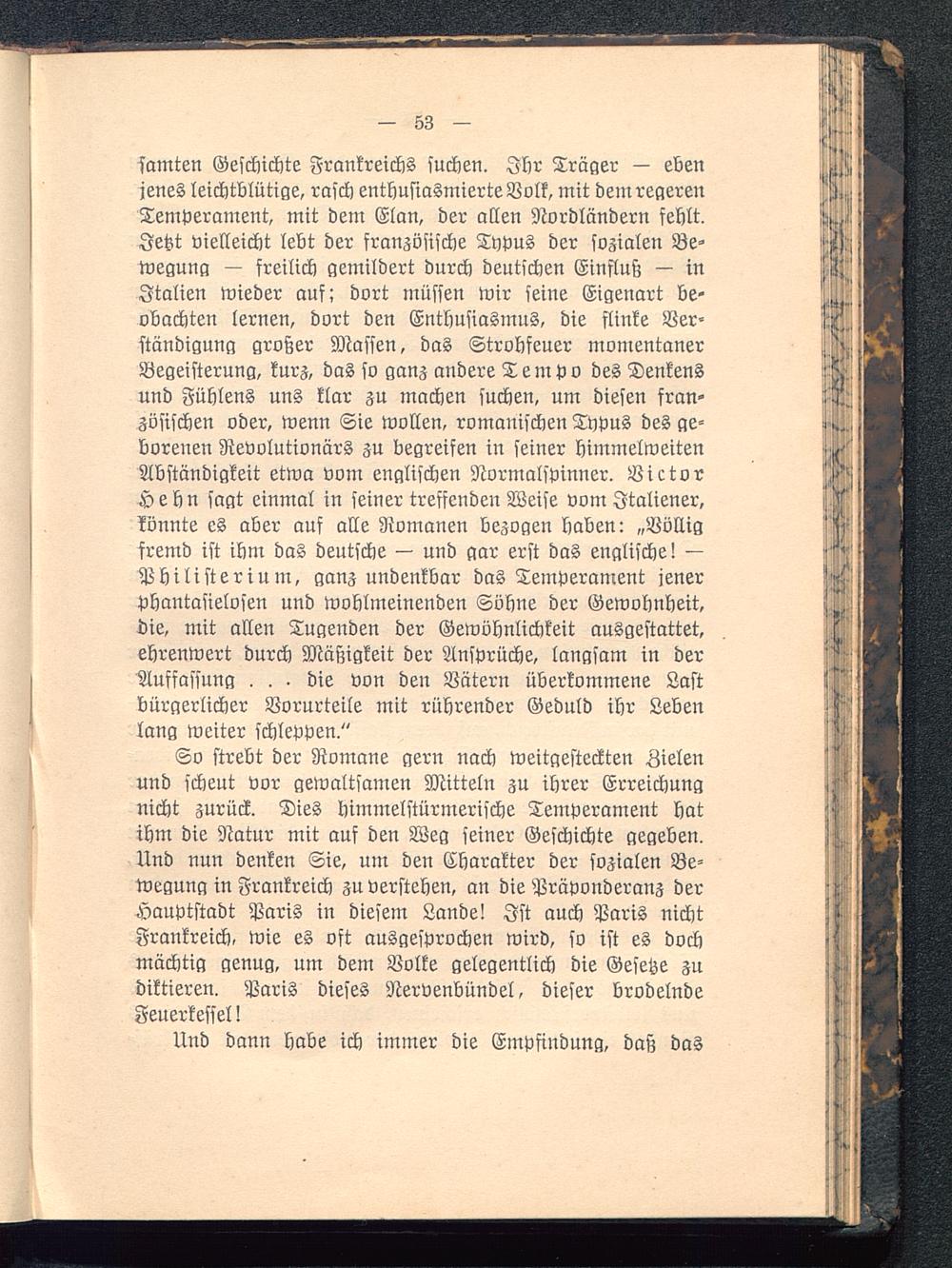 samten Geschichte Frankreichs suchen. Ihr Träger — ebenjenes leichtblütige, rasch enthusiasmierte Volk, mit dem regerenTemperament, mit dem Elan, der allen Nordländern fehlt.Jetzt vielleicht lebt der französische Typus der sozialen Be-wegung — freilich gemildert durch deutschen Einfluß — inItalien wieder auf! dort müssen wir seine Eigenart be-obachten lernen, dort den Enthusiasmus, die flinke Ver-ständigung großer Massen, das Strohfeuer momentanerBegeisterung, kurz, das so ganz andere Tempo des Denkensund Fühlens uns klar zu machen suchen, um diesen fran-zösischen oder, wenn Sie wollen, romanischen Typus des ge-borenen Revolutionärs zu begreifen in seiner himmelweitenAbständigkeit etwa vom englischen Normalspinner. VictorHehn sagt einmal in seiner treffenden Weise vom Italiener ,könnte es aber auf alle Romanen bezogen haben: „Völligfremd ist ihm das deutsche — und gar erst das englische! —Philistertum, ganz undenkbar das Temperament jenerphantasielosen und wohlmeinenden Söhne der Gewohnheit,die, mit allen Tugenden der Gewöhnlichkeit ausgestattet,ehrenwert durch Mäßigkeit der Ansprüche, langsam in derAuffassung ... die von den Vätern überkommene Lastbürgerlicher Vorurteile mit rührender Geduld ihr Lebenlang weiter schleppen."
