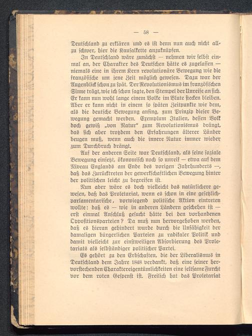 Auf der anderen Seite war Deutschland , als seine sozialeBewegung einsetzt, ökonomisch noch so unreif — etwa auf demNiveau Englands am Ende des vorigen Jahrhundertsdaß das Zurücktreten der gewerkschaftlichen Bewegung hinterder politischen leicht zu begreifen ist.