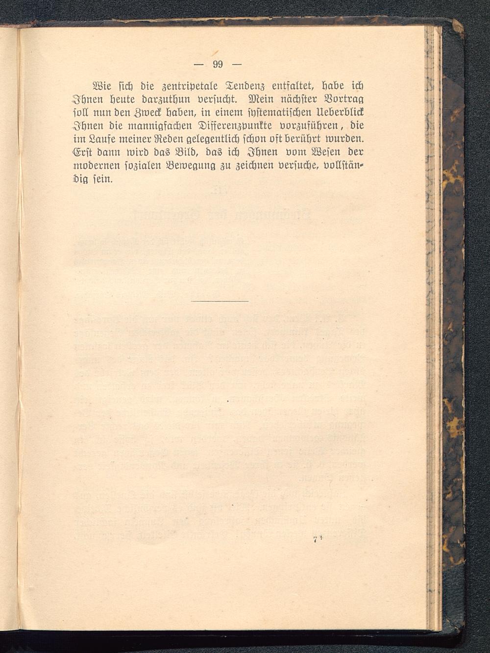 Wie sich die zentripetale Tendenz entfaltet, habe ichIhnen heute darzuthun versucht. Mein nächster Vortragsoll nun den Zweck haben, in einem systematischen UeberblickIhnen die mannigfachen Differenzvunkte vorzuführen, dieim Laufe meiner Reden gelegentlich schon oft berührt wurden.Erst dann wird das Bild, das ich Ihnen vom Wesen dermodernen sozialen Bewegung zu zeichnen versuche, vollstän-dig sein.