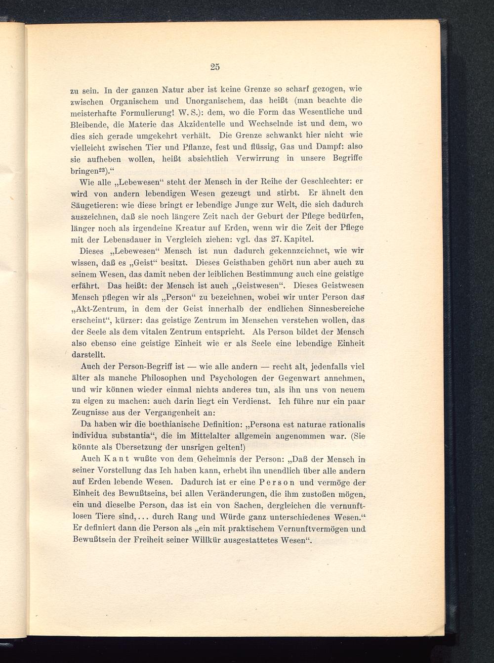 Da haben wir die boethianische Definition: „Persona est naturae rationalisindividua substantia“, die im Mittelalter allgemein angenommen war. (Siekönnte als Übersetzung der unsrigen gelten!)