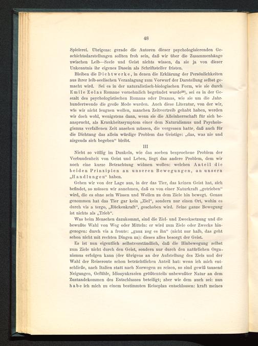 Nicht so völlig im Dunkeln, wie das soeben besprochene Problem derVerbundenheit von Geist und Leben, liegt das andere Problem, dem wirnoch eine kurze Betrachtung widmen wollen: welchen Anteil diebeiden Prinzipien an unseren Bewegungen, an unsern„Handlungen“ haben.