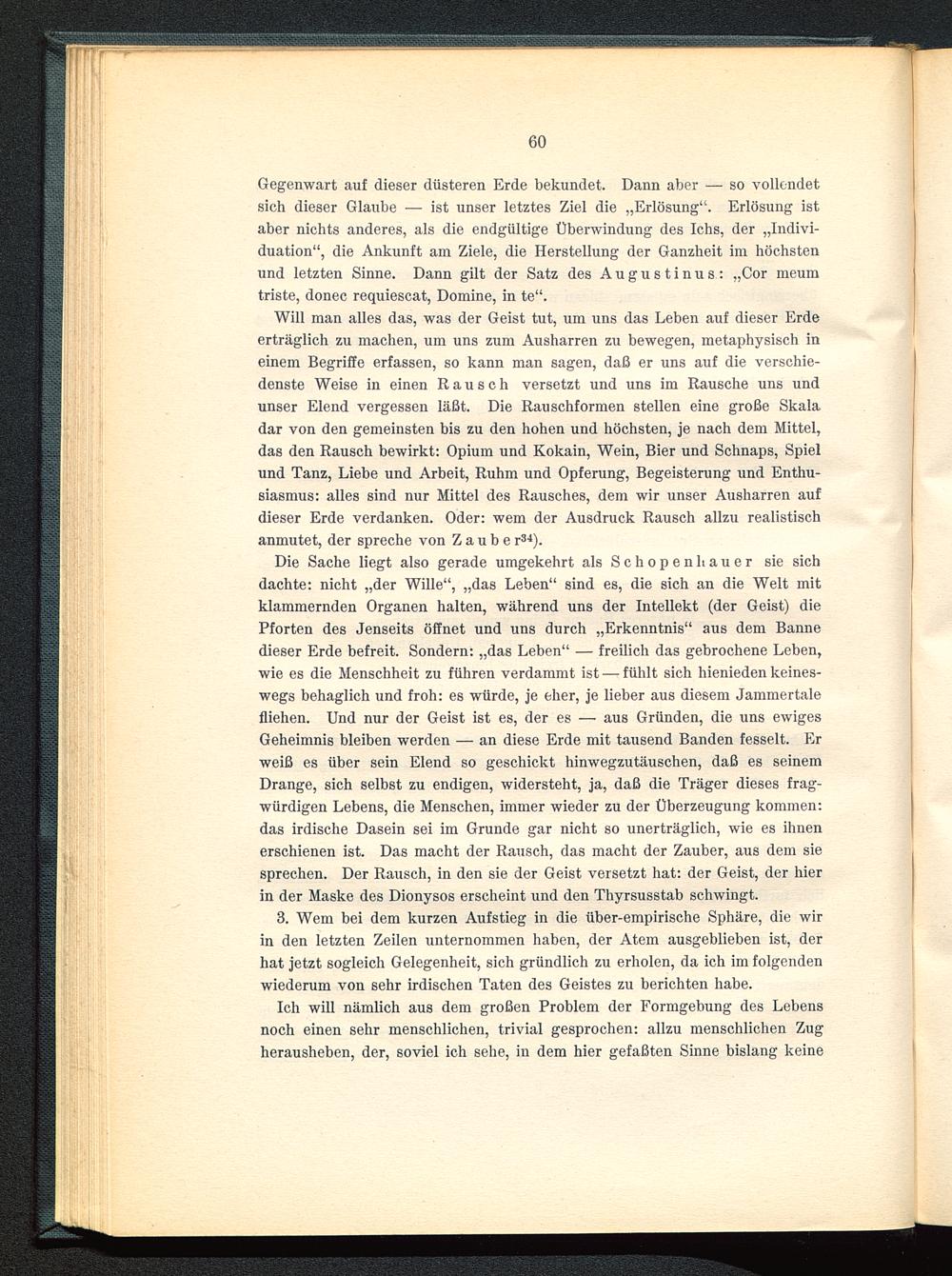 Gegenwart auf dieser düsteren Erde bekundet. Dann aber — so vollendetsich dieser Glaube — ist unser letztes Ziel die „Erlösung“. Erlösung istaber nichts anderes, als die endgültige Überwindung des Ichs, der „Indivi-duation“, die Ankunft am Ziele, die Herstellung der Ganzheit im höchstenund letzten Sinne. Dann gilt der Satz des Augustinus: „Cor meumtriste, donec requiescat, Domine, in te“.
