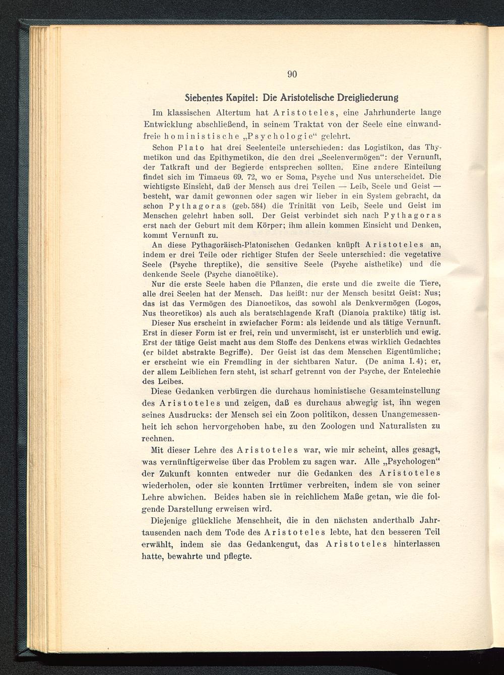 Siebentes Kapitel: Die Aristotelische Dreigliederung