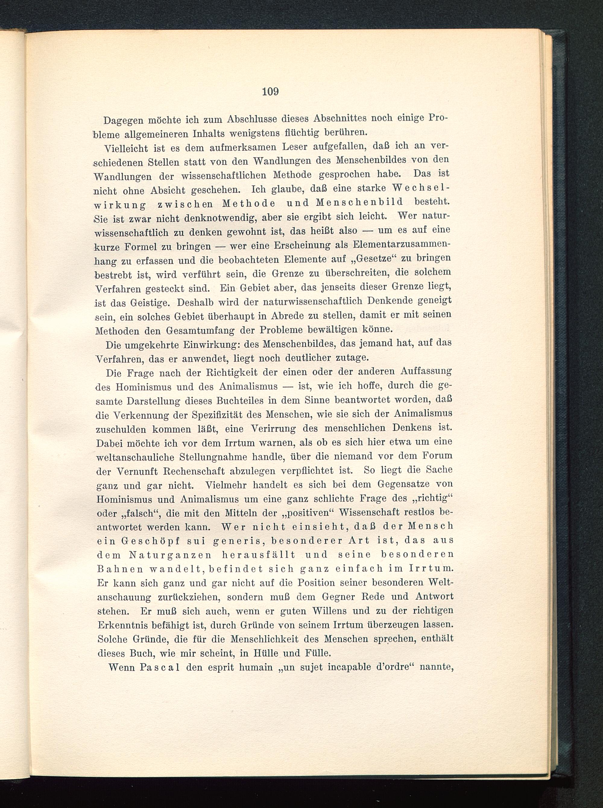Dagegen möchte ich zum Abschlüsse dieses Abschnittes noch einige Pro-bleme allgemeineren Inhalts wenigstens flüchtig berühren.