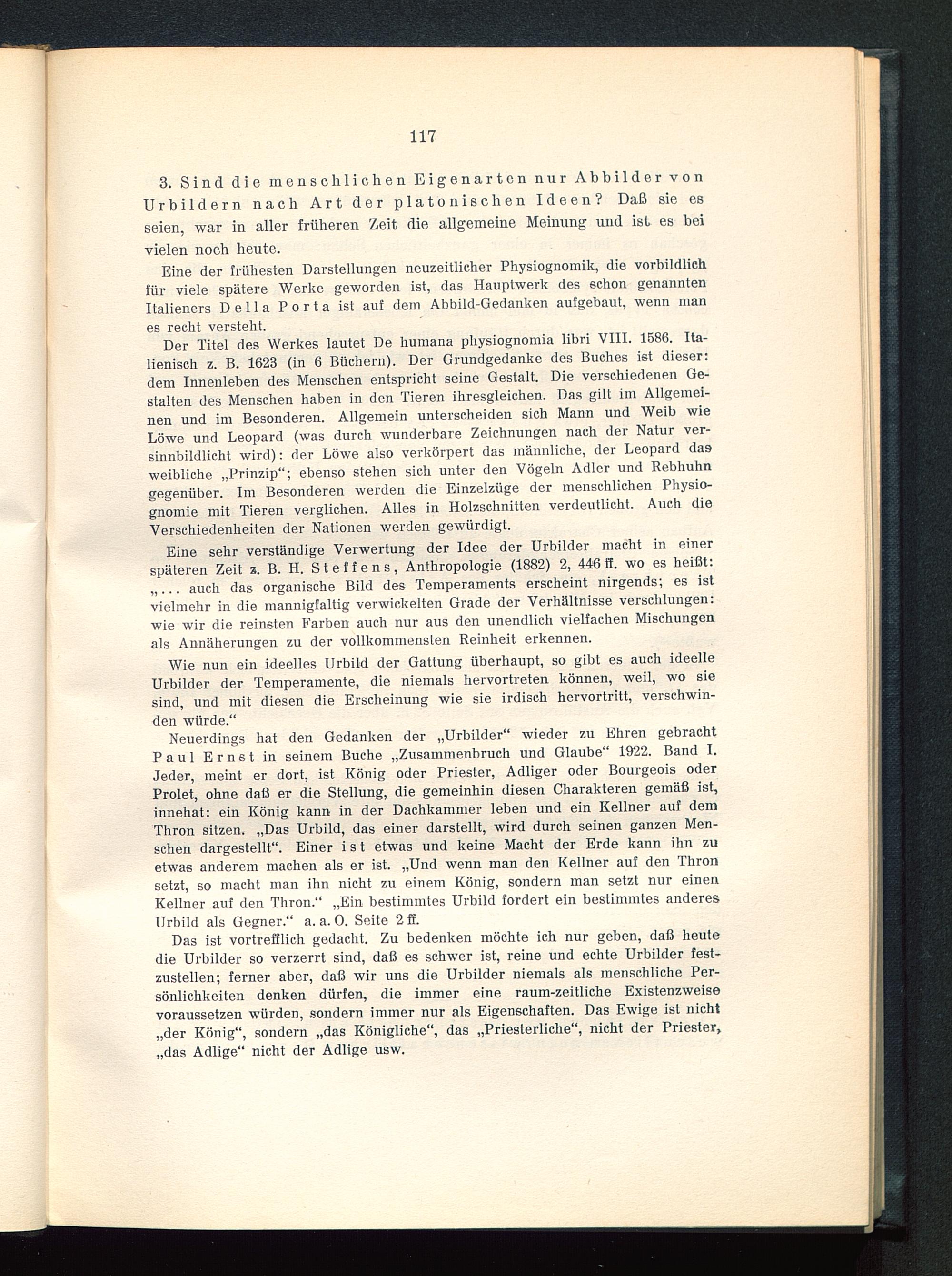 3. Sind die menschlichen Eigenarten nur Abbilder vonUrbildern nach Art der platonischen Ideen? Daß sie esseien, war in aller früheren Zeit die allgemeine Meinung und ist es beivielen noch heute.