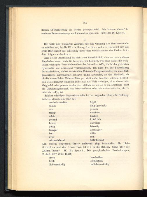 (An diesem Gegensatz [unter anderem] ging bekanntlich die LiebeGoethes und der Frau von Stein in die Brüche. Siehe über die„Klima-Typen“. W. H e 11 p a c h, Die geo-physischen Erscheinungen,2. Aufl. 1917. Seite 164 ff.)