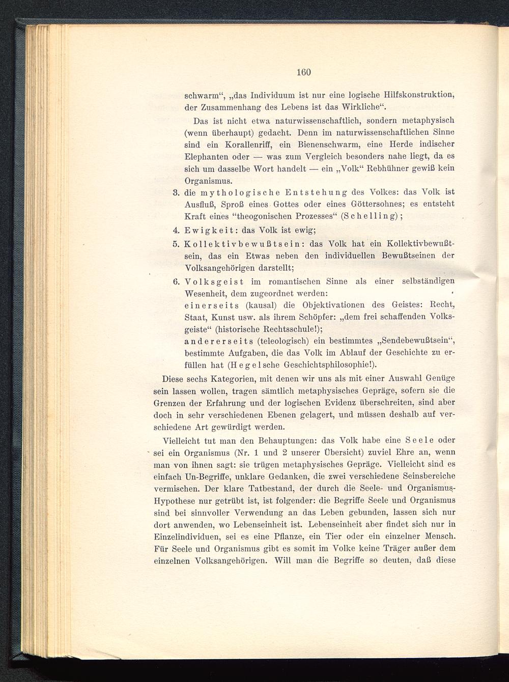 5. Kollektivbewußtsein: das Volk hat ein Kollektivbewußt-sein, das ein Etwas neben den individuellen Bewußtseinen derVolksangehörigen darstellt;