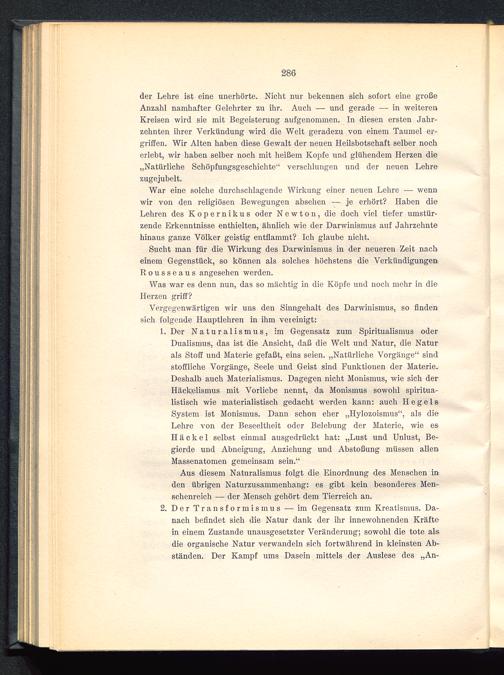 Vergegenwärtigen wir uns den Sinngehalt des Darwinismus, so findensich folgende Hauptlehren in ihm vereinigt: