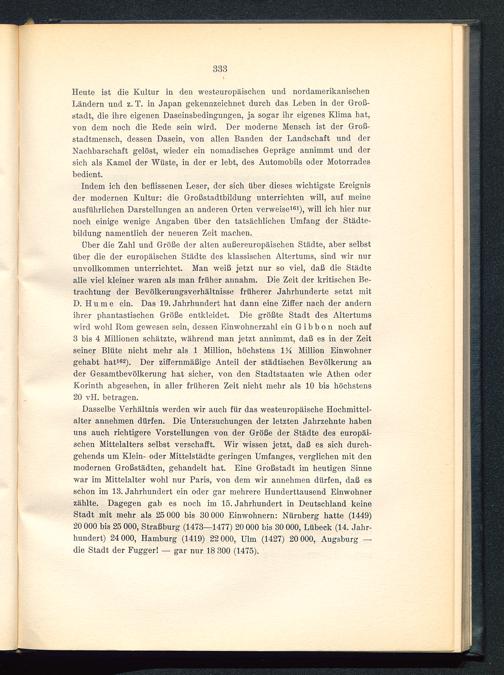 Indem ich den beflissenen Leser, der sich über dieses wichtigste Ereignisder modernen Kultur: die Großstadtbildung unterrichten will, auf meineausführlichen Darstellungen an anderen Orten verweise 161 ), will ich hier nurnoch einige wenige Angaben über den tatsächlichen Umfang der Städte-bildung namentlich der neueren Zeit machen.