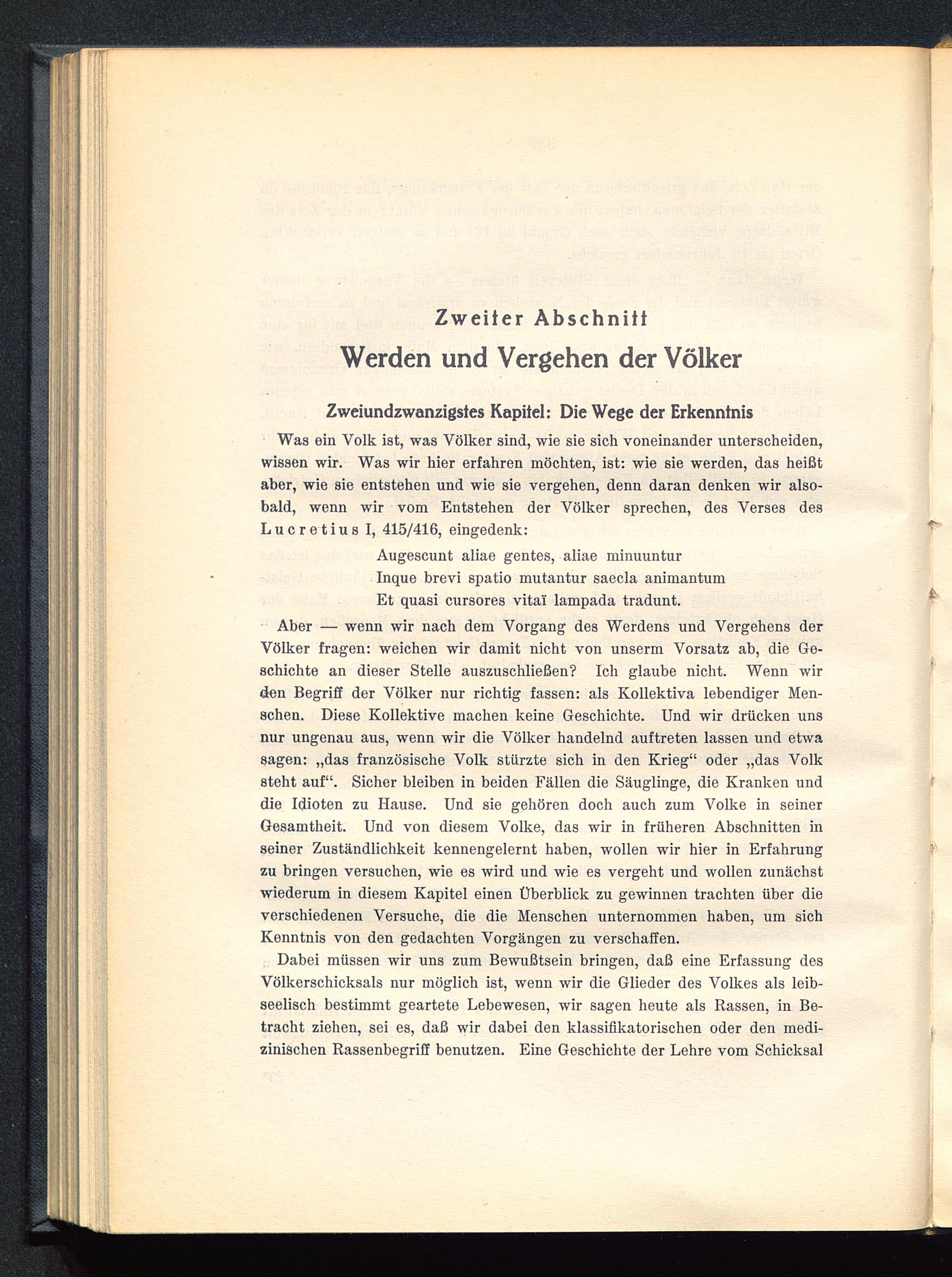Was ein Volk ist, was Völker sind, wie sie sich voneinander unterscheiden,wissen wir. Was wir hier erfahren möchten, ist: wie sie werden, das heißtaber, wie sie entstehen und wie sie vergehen, denn daran denken wir also-bald, wenn wir vom Entstehen der Völker sprechen, des Verses desLucretius I, 415/416, eingedenk:
