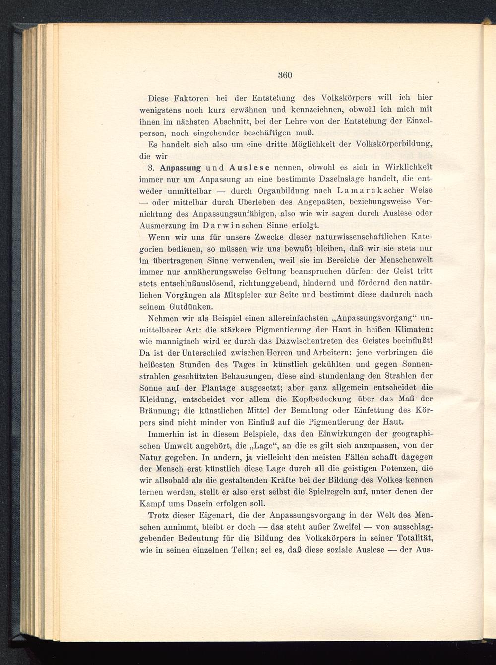 Diese Faktoren bei der Entstehung des Volkskörpers will ich liierwenigstens noch kurz erwähnen und kennzeichnen, obwohl ich mich mitihnen im nächsten Abschnitt, bei der Lehre von der Entstehung der Einzel-person, noch eingehender beschäftigen muß.