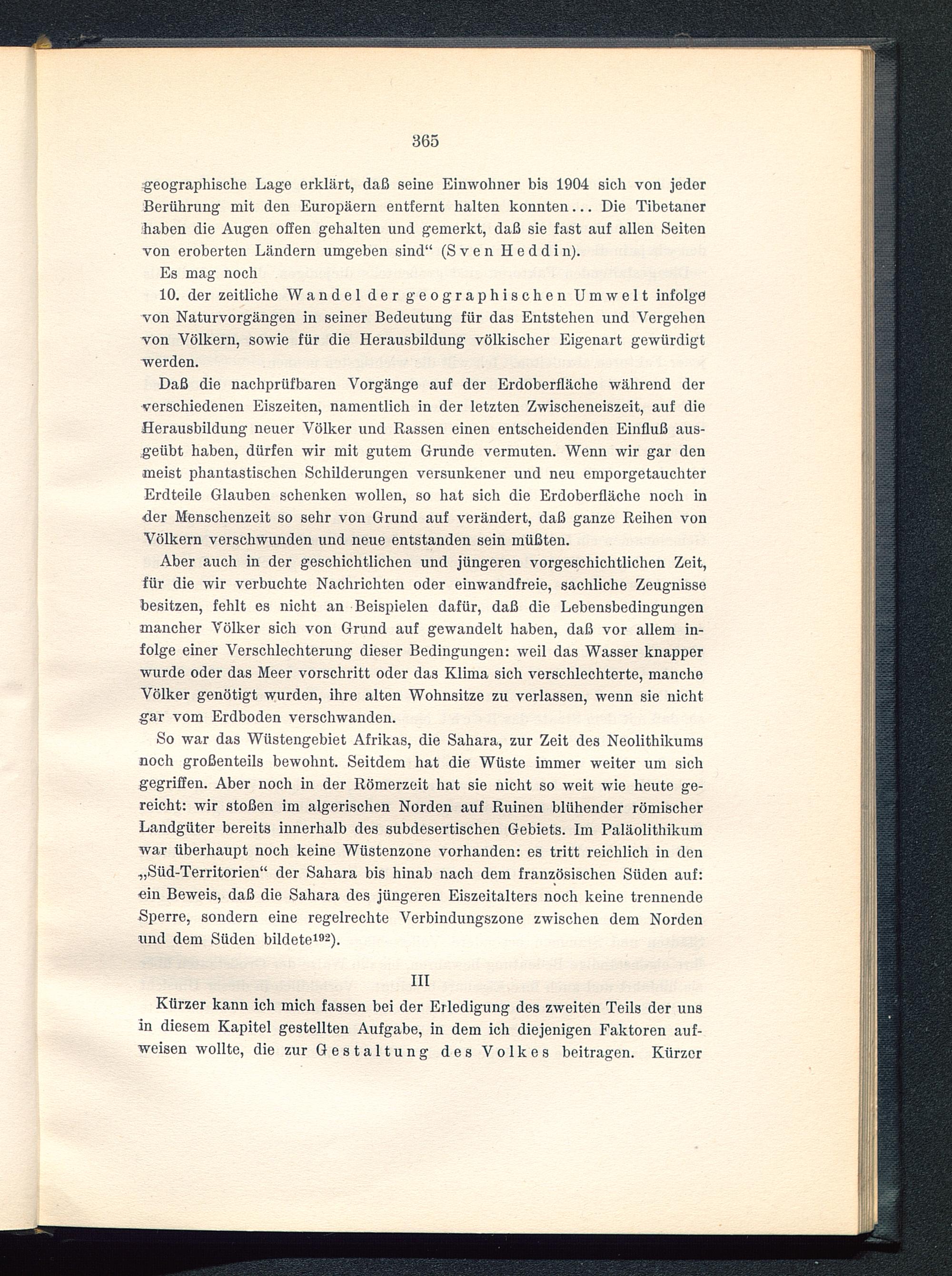Aber auch in der geschichtlichen und jüngeren vorgeschichtlichen Zeit,für die wir verbuchte Nachrichten oder einwandfreie, sachliche Zeugnissebesitzen, fehlt es nicht an Beispielen dafür, daß die Lebensbedingungenmancher Völker sich von Grund auf gewandelt haben, daß vor allem in-folge einer Verschlechterung dieser Bedingungen: weil das Wasser knapperwurde oder das Meer vorschritt oder das Klima sich verschlechterte, mancheVölker genötigt wurden, ihre alten Wohnsitze zu verlassen, wenn sie nichtgar vom Erdboden verschwanden.