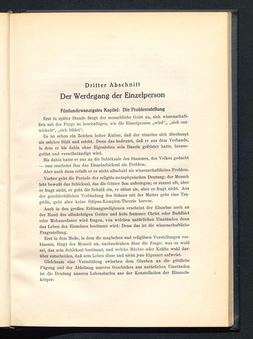 Es ist schon ein Zeichen hoher Kultur, daß der einzelne sich überhauptals solcher fühlt und erlebt. Denn das bedeutet, daß er aus dem Verbände,in dem er bis dahin ohne Eigenleben sein Dasein gefristet hatte, heraus-gelöst und verselbständigt wird.