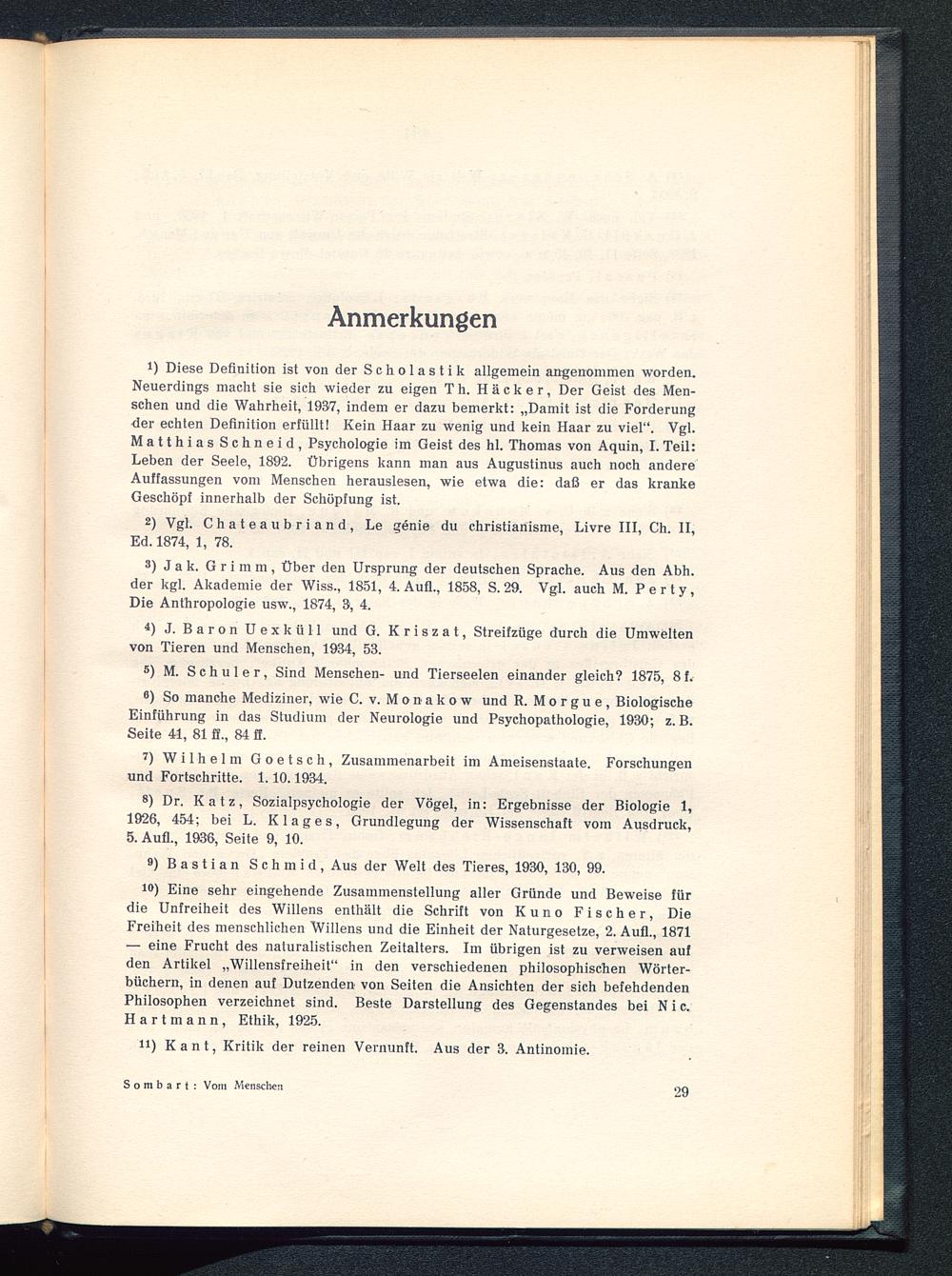 1) Diese Definition ist von der Scholastik allgemein angenommen worden.Neuerdings macht sie sich wieder zu eigen Th. Häcker, Der Geist des Men-schen und die Wahrheit, 1937, indem er dazu bemerkt: „Damit ist die Forderungder echten Definition erfüllt! Kein Haar zu wenig und kein Haar zu viel“. Vgl.Matthias Schneid, Psychologie im Geist des hl. Thomas von Aquin , I. Teil:Leben der Seele, 1892. Übrigens kann man aus Augustinus auch noch andereAuffassungen vom Menschen herauslesen, wie etwa die: daß er das krankeGeschöpf innerhalb der Schöpfung ist.