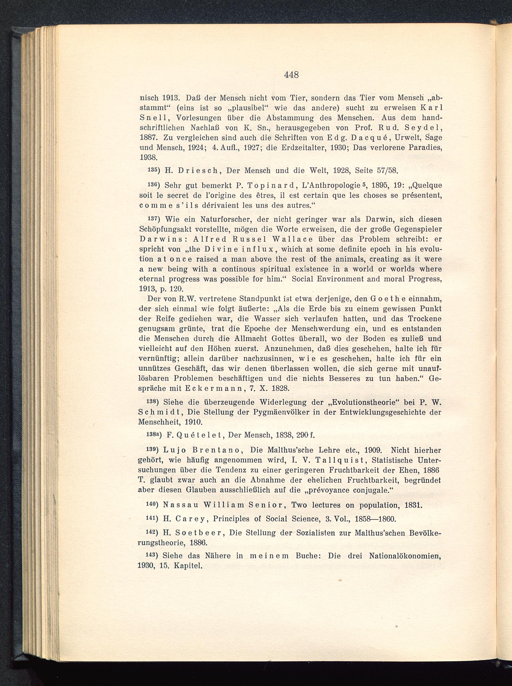 136) Sehr gut bemerkt P. Topinard , L’Anthropologie 5, 1895, 19: „Quelquesoit le secret de l’origine des etres, il est certain que les choses se presentent,c o m m e s ’ i 1 s ddrivaient les uns des autres.“