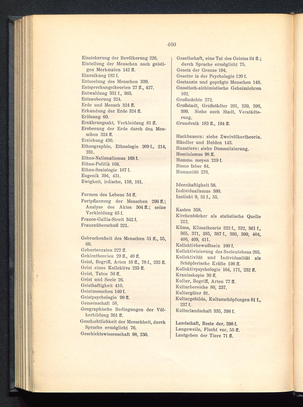 Einsickerung der Bevölkerung 226.Einteilung der Menschen nach geisti-gen Merkmalen 142 ff.