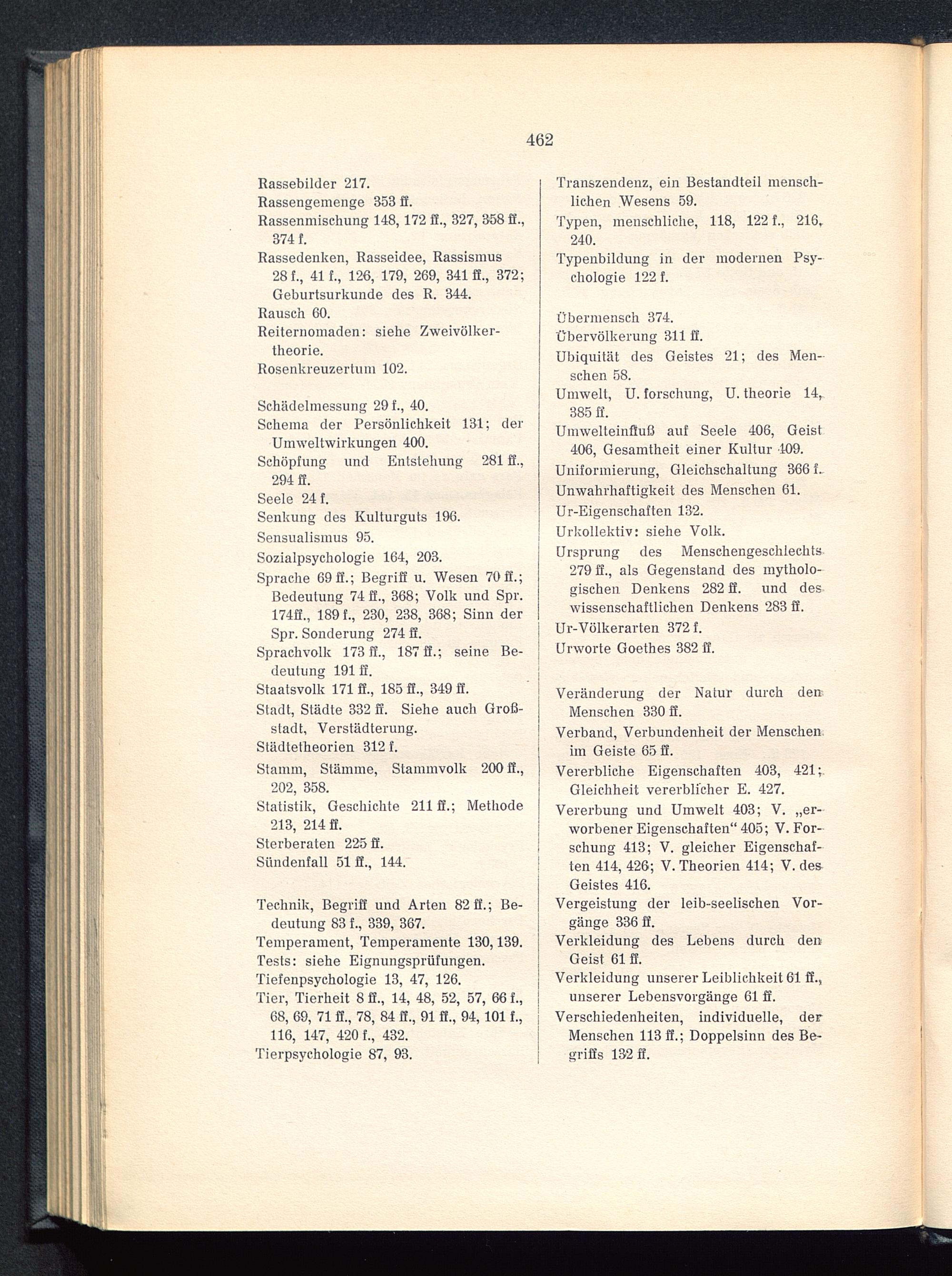 Umwelteinfluß auf Seele 406, Geist406, Gesamtheit einer Kultur 109.