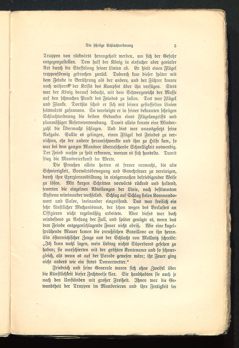 Friedrich und seine Generale waren sich ohne Zweifel überdie Künstlichkeit dieser Fechtweise klar. Sie handhabten sie auch jenach den Umständen mit großer Freiheit. Ihnen war die Ge-wandtheit der Truppen im Manövrieren und ihre Fertigkeit im