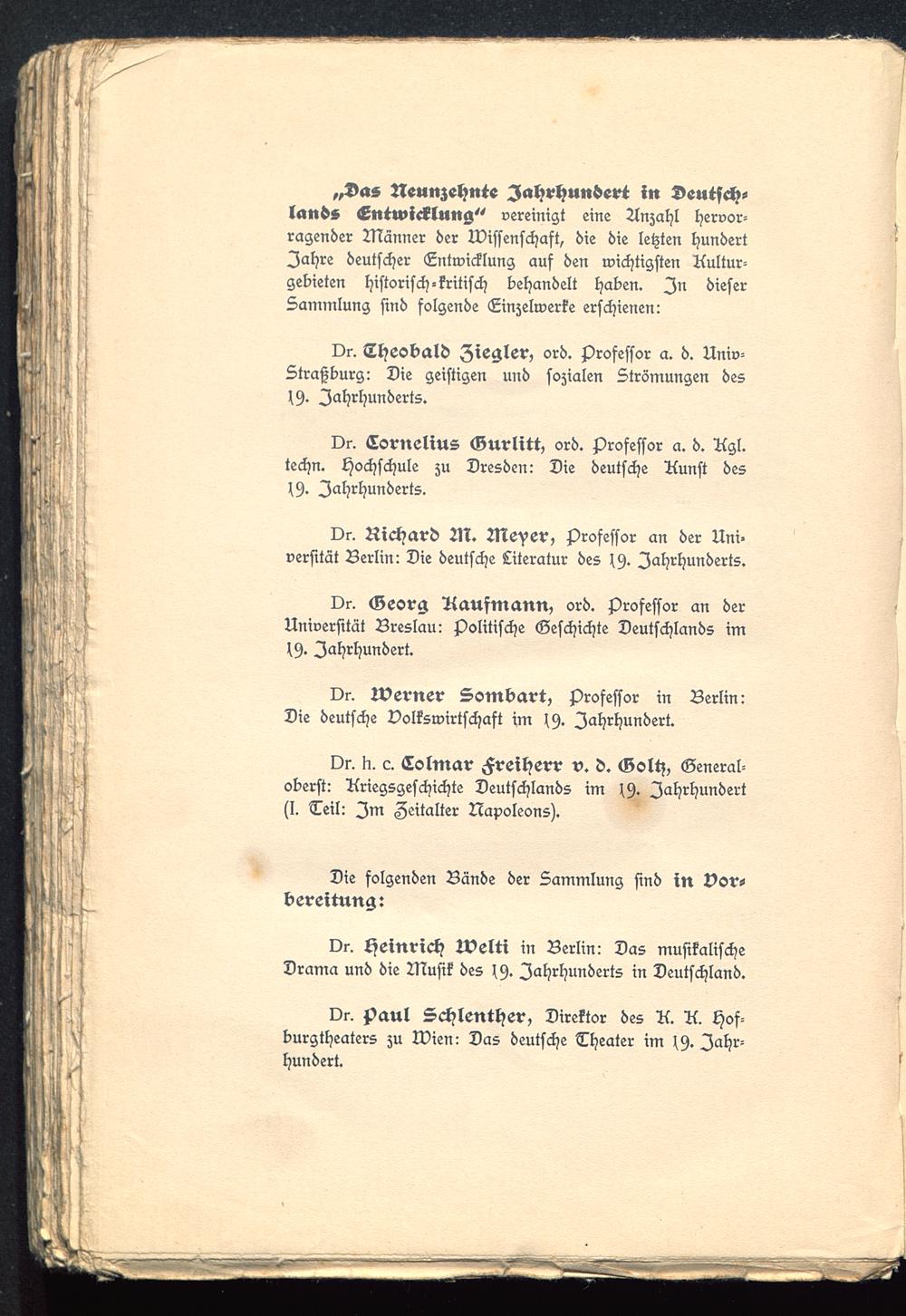 Dr. Georg Aaufinann, ord. Professor an derUniversität Breslau: politische Geschichte Deutschlands im^9. Jahrhundert.
