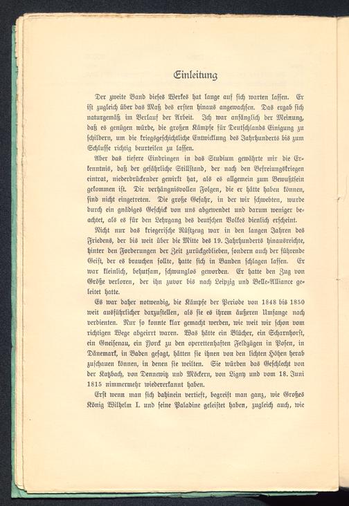 Der zweite Band dieses Werkes hat lange auf sich warten lassen. Erist zugleich über das Maß des ersten hinaus angewachsen. Das ergab sichnaturgemäß im Verlauf der Arbeit. Ich war anfänglich der Meinung,daß es genügen würde, die großen Kämpfe für Deutschlands Einigung zuschildern, um die kriegsgeschichtliche Entwicklung des Jahrhunderts bis zumSchlüsse richtig beurteilen zu lassen.