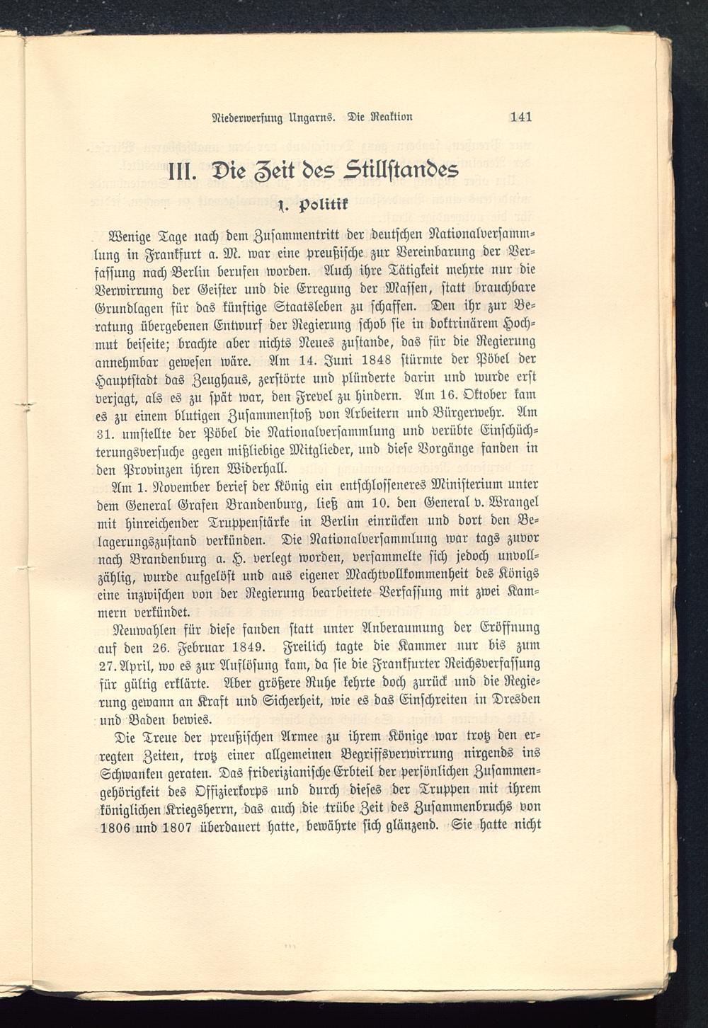 Die Treue der preußischen Armee zu ihrem Könige war trotz den er-regten Zeiten, trotz einer allgemeinen Begriffsverwirrung nirgends insSchwanken geraten. Das friderizianische Erbteil der persönlichen Zusammen-gehörigkeit des Offizierkorps und durch dieses der Truppen mit ihremköniglichen Kriegsherrn, das auch die trübe Zeit des Zusammenbruchs von1306 und 1807 überdauert hatte, bewährte sich glänzend. Sie hatte nicht
