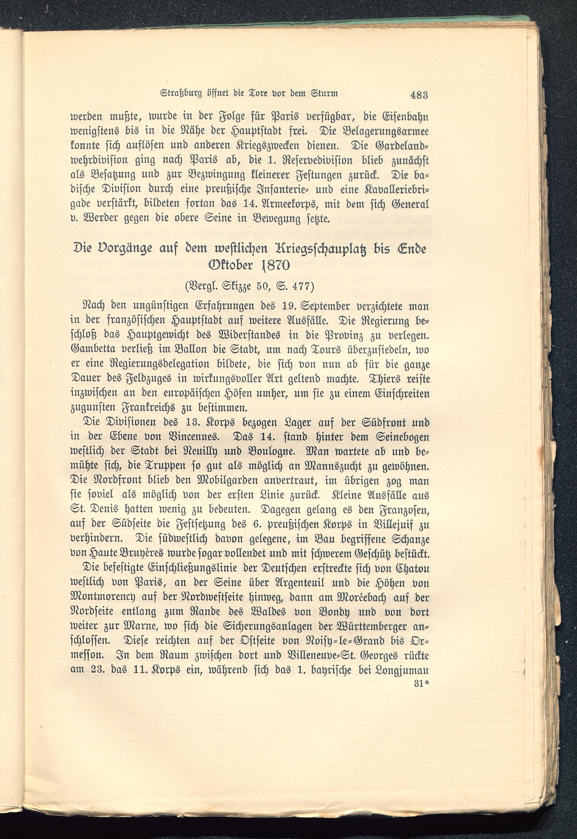 werden mußte, wurde in der Folge für Paris verfügbar, die Eisenbahnwenigstens bis in die Nähe der Hauptstadt frei. Die Belagerungsarmeekonnte sich auflösen und anderen Kriegszwecken dienen. Die Gardeland-wehrdivision ging nach Paris ab, die 1. Reservedivision blieb zunächstals Besatzung und zur Bezwingung kleinerer Festungen zurück. Die ba-dische Division durch eine preußische Infanterie- und eine Kavalleriebri-gade verstärkt, bildeten fortan das 14. Armeekorps, mit dem sich General v. Werder gegen die obere Seine in Bewegung setzte.