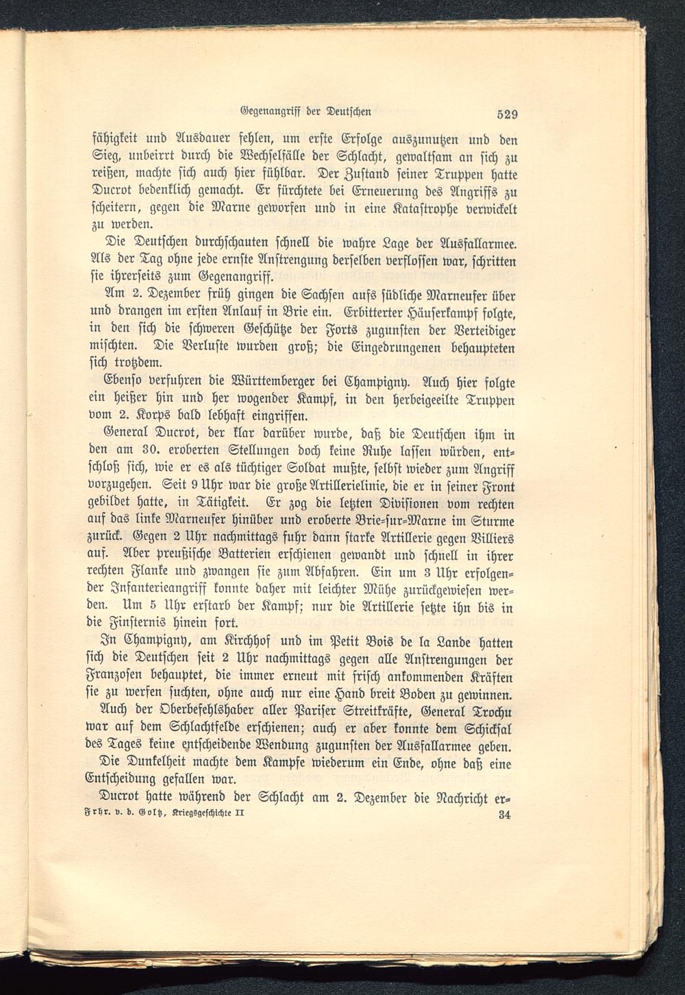 Am 2. Dezember früh gingen die Sachsen aufs südliche Marneufer überund drangen im ersten Anlauf in Brie ein. Erbitterter Häuserkampf folgte,in den sich die schweren Geschütze der Forts zugunsten der Verteidigermischten. Die Verluste wurden groß; die Eingedrungenen behauptetensich trotzdem.