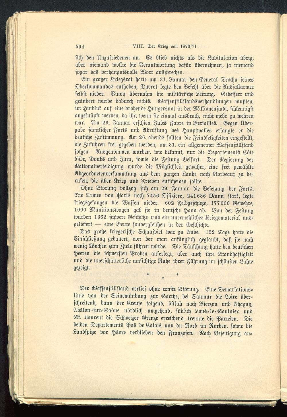 Ohne Störung vollzog sich am 29. Januar die Besetzung der Forts.Die Armee von Paris noch 7456 Offiziere, 241636 Mann stark, legtekriegsgefangen die Waffen nieder. 602 Feldgeschütze, 177 000 Gewehre,1000 Munitionswagen gab sie in deutsche Hand ab. Von der Festungwurden 1362 schwere Geschütze und ein unermeßliches Kriegsmaterial aus-geliefert — eine Beute sondergleichen in der Geschichte.
