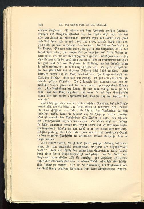 ersehnte Reglement. Es räumte mit dem Zwiespalt zwischen Friedens-übungen und Kriegsbrauchbarkeit auf. Es regelte nicht mehr, wie dasalte, den Kampf auf Kommando, sondern lehrte den Kampf nach Zweckund Aufträgen, wie er auch 1866 und 1870, damals jedoch ohne vor-geschrieben zu sein, ausgefochten worden war. Neues Leben kam damit indie Truppe. Sie war nicht mehr genötigt, in dem Augenblick, da sie dasGefechtsfeld betrat, zum großen Teil zu vergessen, was sie im Frieden ge-lernt hatte. Die für den Kampf gegebenen Formen und Lehren eigneten sichohne Änderung für den praktischen Gebrauch. Mit den militärischen Ansichtender Zeit stand das neue Reglement in Einklang, und das Gefecht konnteso geübt werden, wie es dort vorgeschrieben war. Die große Freiheit fürdie Selbständigkeit des einzelnen Führers blieb dabei erhalten. „AlleÜbungen müssen auf den Krieg berechnet sein. Im Kriege verspricht nurEinfaches Erfolg." Dies war sein Leitsatz. Er gab dem ganzen Dienst-betriebe größere Sicherheit. Die Infanterie kam nunmehr aus dem be-denklichen Tasten heraus und trat in bestimmte, ihr vorgezeichnete Bahnenein. „Die Ausbildung der Truppe ist nur dann richtig, wenn sie daskann, was der Krieg erfordert, und wenn sie auf dem Gefechtsfeldenichts von dem wieder abzustreifen hat, was sie auf dem Exerzierplatzerlernte."