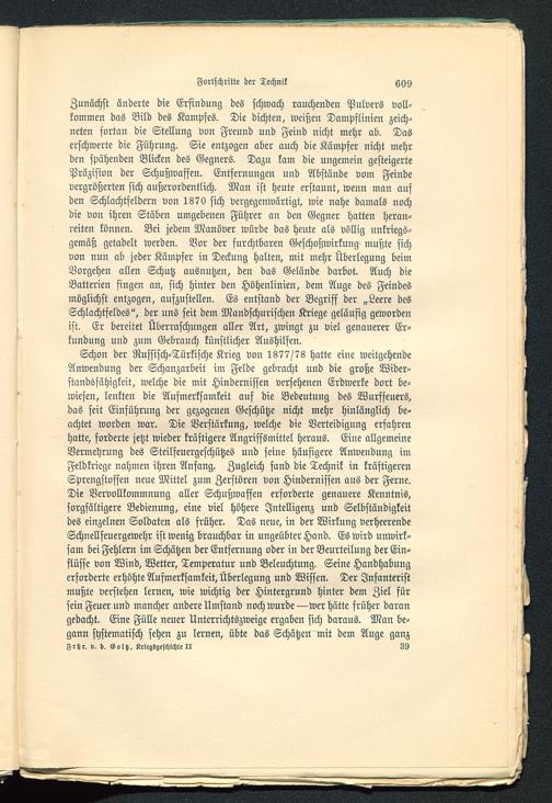 Schon der Russisch-Türkische Krieg von 1877/73 hatte eine weitgehendeAnwendung der Schanzarbeit im Felde gebracht und die große Wider-standsfähigkeit, welche die mit Hindernissen versehenen Erdwerke dort be-wiesen, lenkten die Aufmerksamkeit auf die Bedeutung des Wurffeuers,das seit Einführung der gezogenen Geschütze nicht mehr hinlänglich be-achtet worden war. Die Verstärkung, welche die Verteidigung erfahrenhatte, forderte jetzt wieder kräftigere Angriffsmittel heraus. Eine allgemeineVermehrung des Steilfeuergeschützes und seine häufigere Anwendung imFeldkriege nahmen ihren Anfang. Zugleich fand die Technik in kräftigerenSprengstoffen neue Mittel zum Zerstören von Hindernissen ans der Ferne.Die Vervollkommnung aller Schußwaffen erforderte genauere Kenntnis,sorgfältigere Bedienung, eine viel höhere Intelligenz und Selbständigkeitdes einzelnen Soldaten als früher. Das neue, in der Wirkung verheerendeSchnellfeuergewehr ist wenig brauchbar in ungeübter Hand. Es wird unwirk-sam bei Fehlern im Schätzen der Entfernung oder in der Beurteilung der Ein-flüsse von Wind, Wetter, Temperatur und Beleuchtung. Seine Handhabungerforderte erhöhte Aufmerksamkeit, Überlegung und Wissen. Der Infanteristmußte verstehen lernen, wie wichtig der Hintergrund hinter dem Ziel fürsein Feuer und mancher andere Umstand noch wurde —wer hätte früher darangedacht. Eine Fülle neuer Unterrichtszweige ergaben sich daraus. Man be-gann systematisch sehen zu lernen, übte das Schätzen mit dem Auge ganz