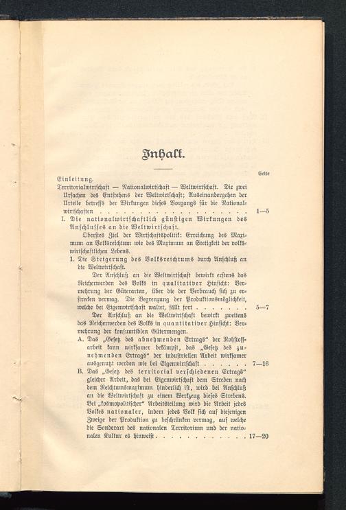 L. Das „Gesetz des territorial verschiedenen Ertrags"gleicher Arbeit, das bei Eigenwirtschaft dem Streben nachdem Reichtumsmaximum hinderlich ist, wird bei Anschlußan die Weltwirtschaft zu einem Werkzeug dieses Strebens.Bei „kosmopolitischer" Arbeitsteilung wird die Arbeit jedesVolkes nationaler, indem jedes Volk sich auf diejenigenZweige der Produktion zu beschränken vermag, auf welchedie Sonderart des nationalen Territorium und der natio-nalen Kultur es hinweist............17—20
