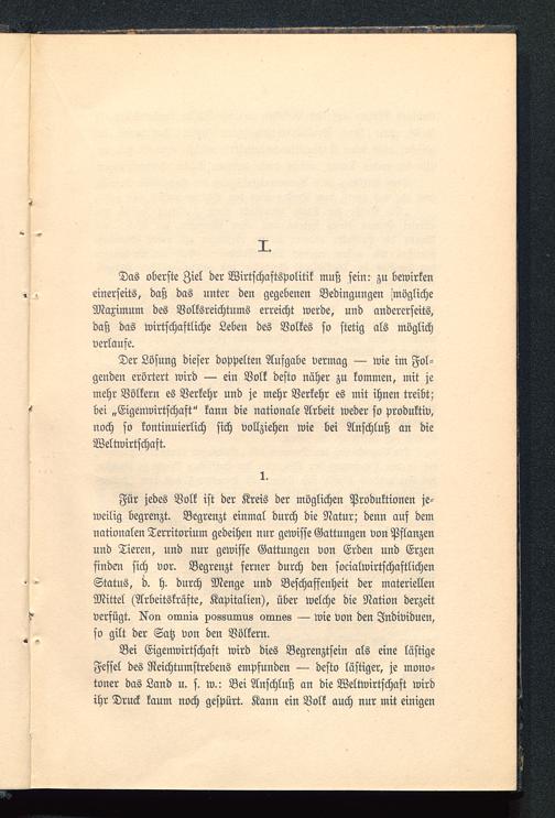 Für jedes Volk ist der Kreis der möglichen Produktionen je-weilig begrenzt. Begrenzt einmal durch die Natur; denn auf demnationalen Territorium gedeihen nur gewisse Gattungen von Pflanzenund Tieren, und nur gewisse Gattungen von Erden und Erzenfinden sich vor. Begrenzt ferner durch den socialwirtschaftlichenStatus, d. h. durch Menge und Beschaffenheit der materiellenMittel (Arbeitskräfte, Kapitalien), über welche die Nation derzeitverfügt. Non omnia xossumuZ omves — wie von den Individuen,so gilt der Satz von den Völkern.